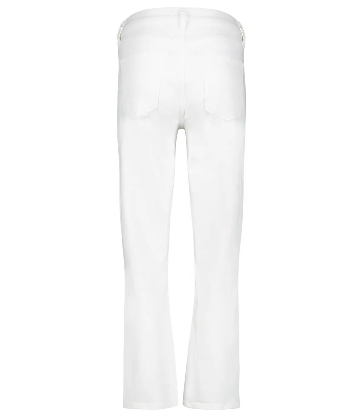 Jean Kye Mid Rise Straight Crop Stretch de la marque AGOLDE, un élégant jean droit blanc idéal pour l’été. On l’imagine avec une paire de sandales et une blouse fluide pour un look chic et estival.