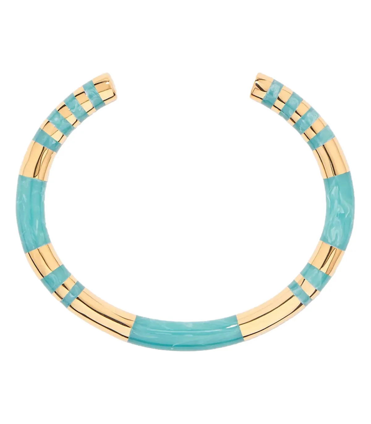 Discrètement striée de lumière, la collection Positano emprunte à la côte amalfitaine ses couleurs gourmandes et florales. Le jonc Positano est recouvert d’or jaune 750/1000. Sa Bakélite couleur Amazonite évoque les reflets du soleil sur l’eau turquoise l’été.