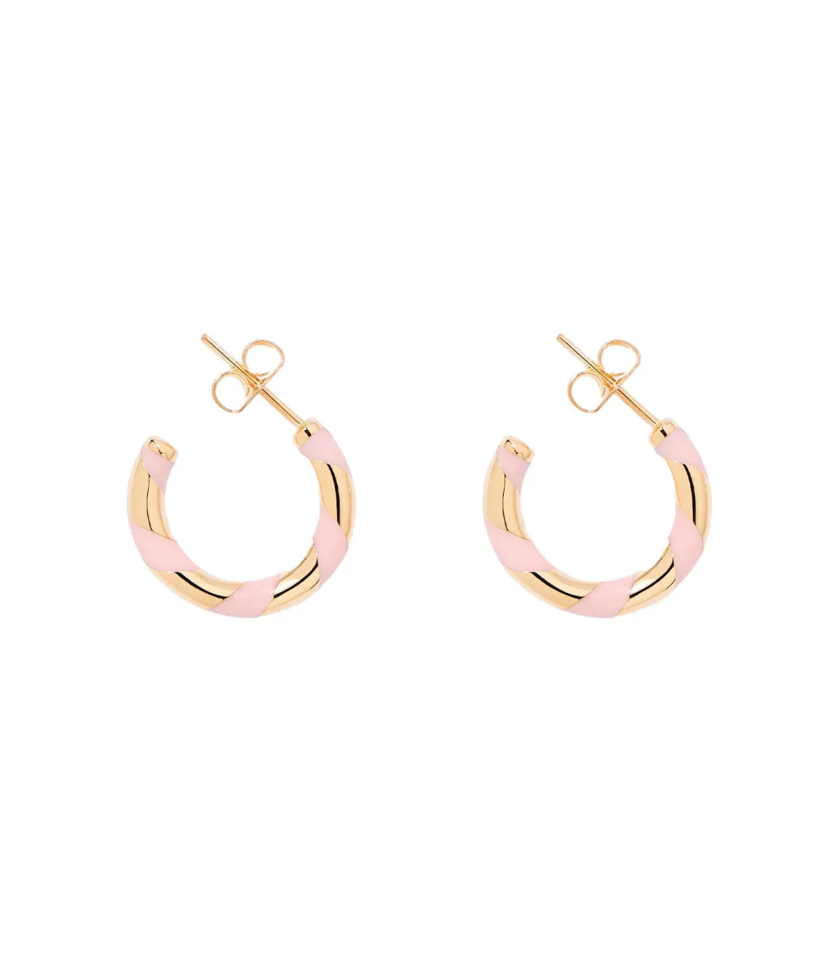 Mini Créoles PM Positano Paille signées Aurélie Bidermann. Discrètement striée de lumière, la collection Positano emprunte à la côte amalfitaine ses couleurs gourmandes et florales.