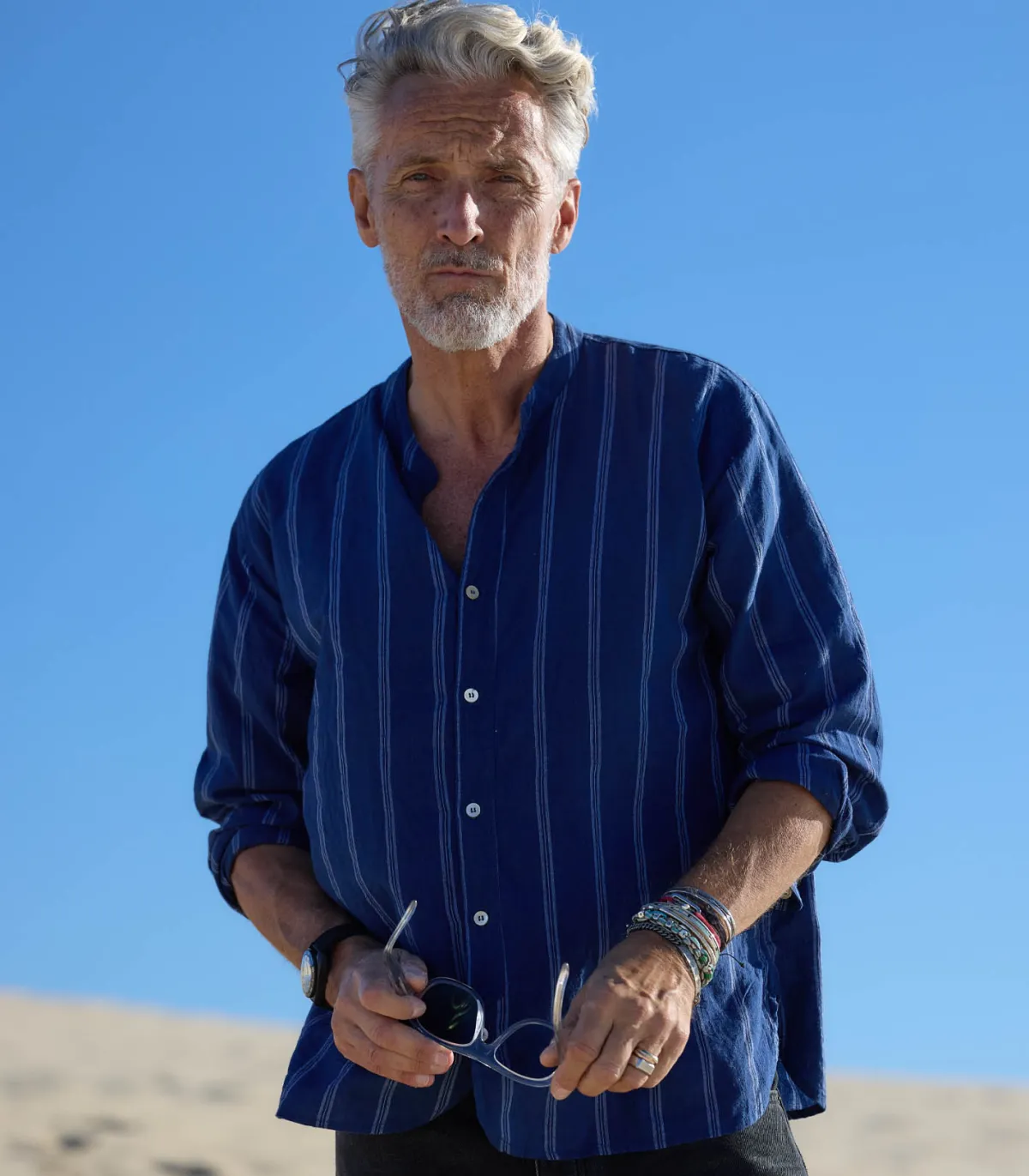 Dotée d’un col mao distinctif, la chemise Jasper Duffer est à la fois élégante et moderne. Conçue dans un bleu foncé classique, elle est agrémentée de fines rayures blanches, ajoutant une touche de sophistication. Sa coupe ajustée assure un look soigné, parfait pour les occasions décontractées ou professionnelles. Fabriquée avec des matériaux de haute qualité, elle offre confort et style tout au long de la journée.