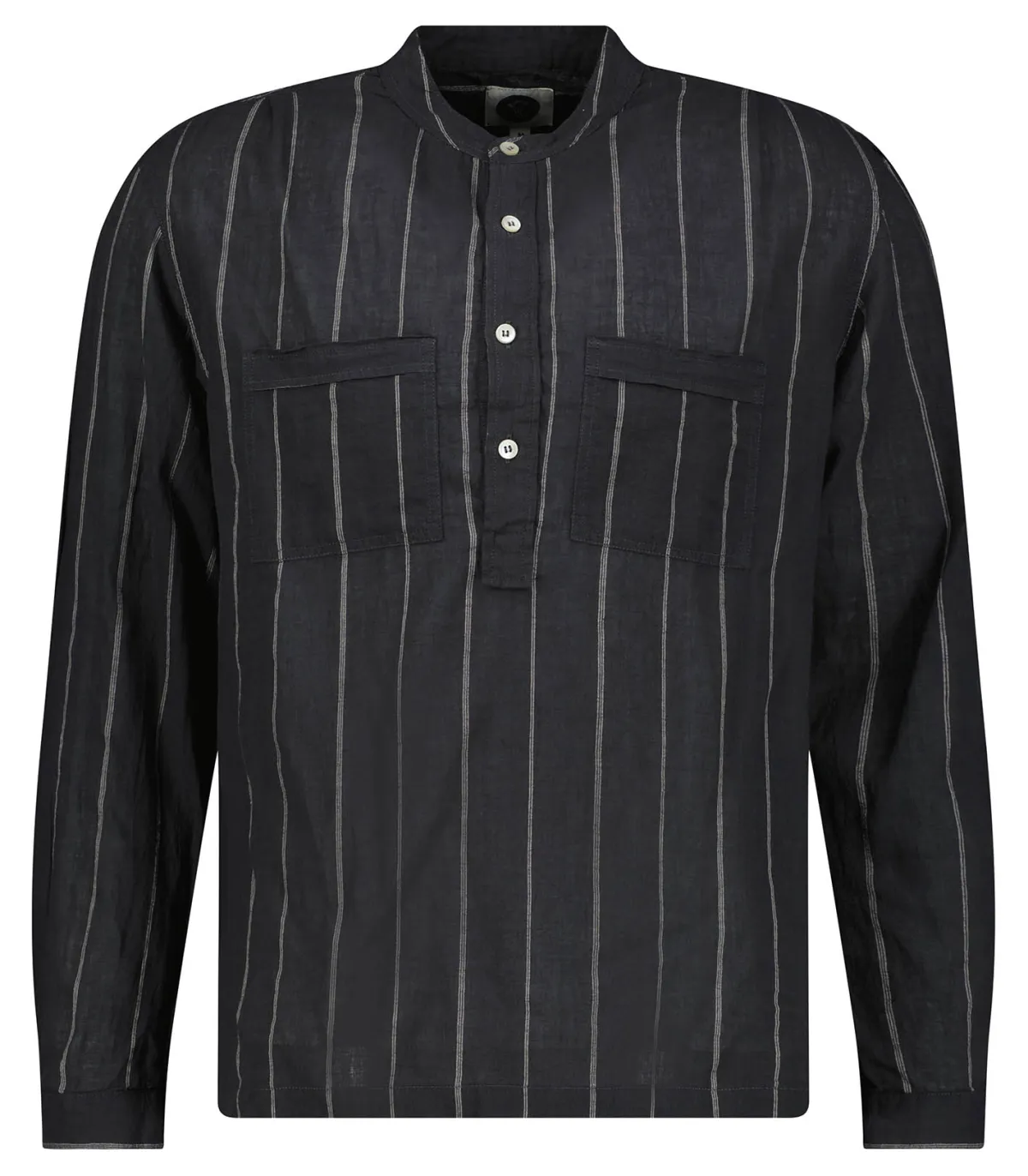 Chemise pour homme Marlon Brown de la marque Bsbee. Chemise légère et fluide en coton, idéale pour les beaux jours. Sa coupe présente un petit col mao élégant et décontracté, tandis que son design présente une toile marron agrémentée de fines rayures beiges.