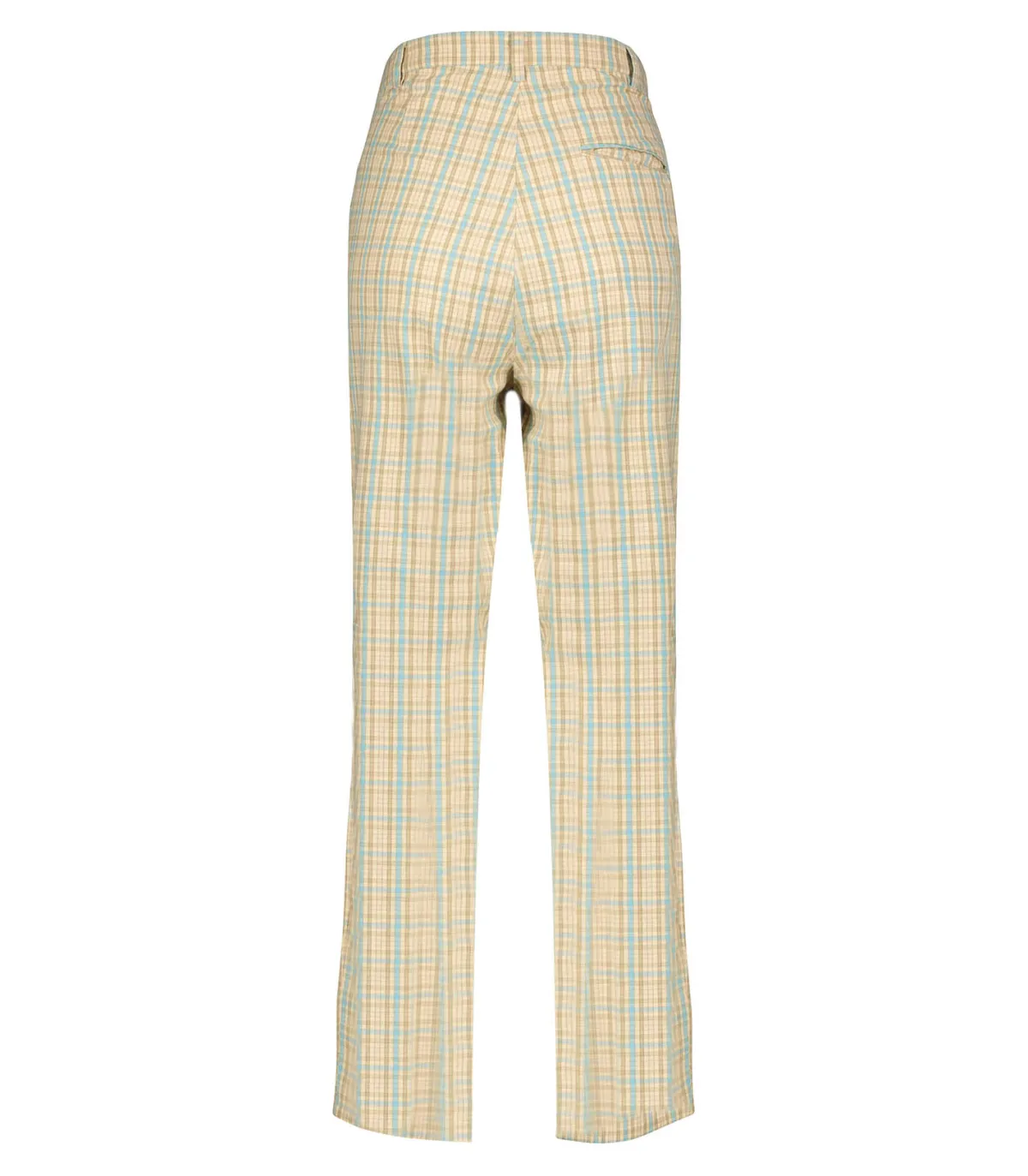 Pantalon Rayssa checks de la marque Charlie Joe, un bas de costume original avec une jolie toile à carreaux dans un coloris jaune pastel agrémentée de teintes bleues et beiges.