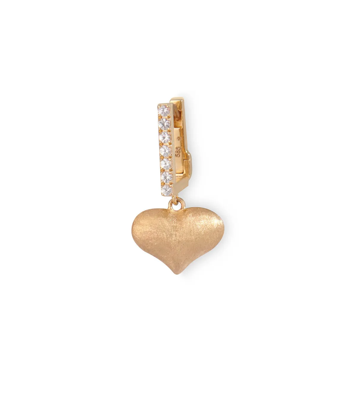 Feidt Paris Créole en or Brossé Charm Coeur Pavée de Saphirs Blancs*Femme Boucles D’Oreilles