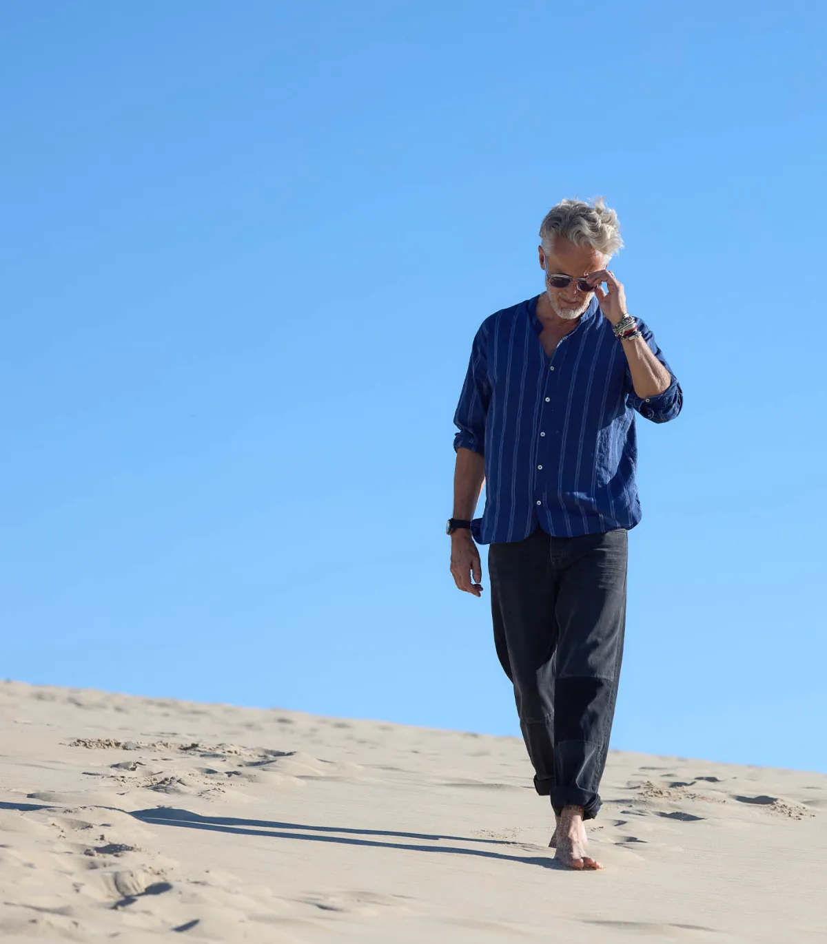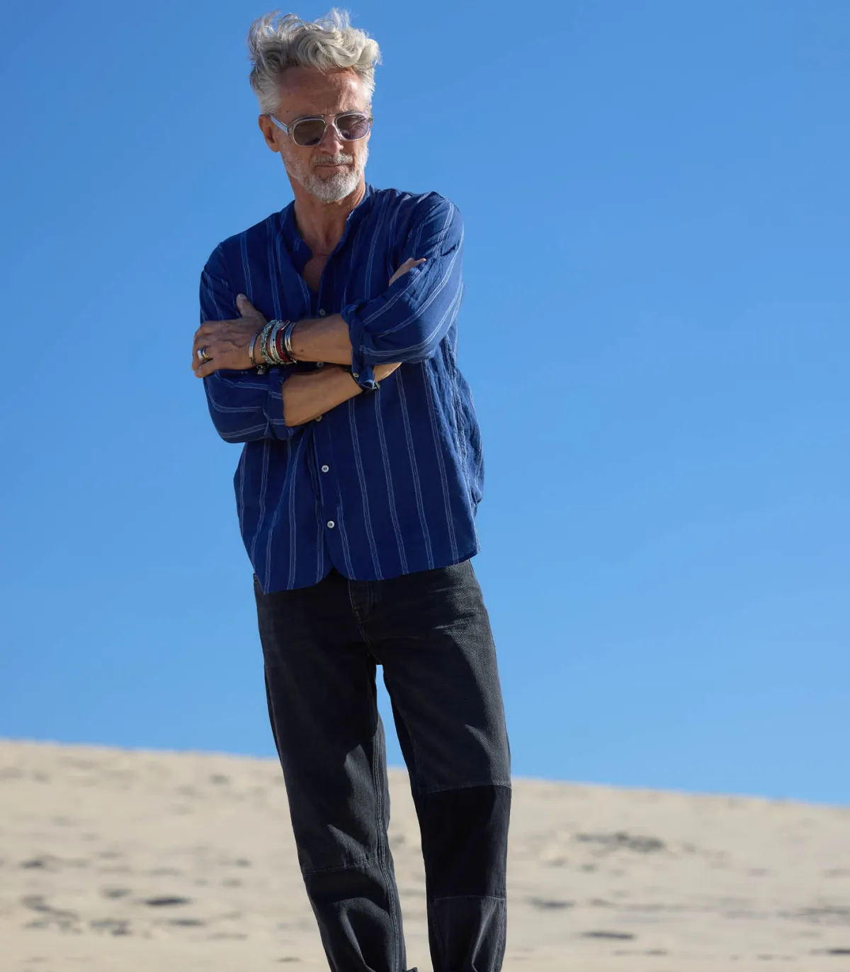 Frame signe ce jean pour homme Modern Blocking, une version moderne du denim droit avec un denim noir délavé et un patch contrastant au genou, pour un effet rock. Un détail de couture horizontale au genou renforce encore davantage cet effet de jean reconstitué, qui s’inscrit dans la tendance de l’upcycling.