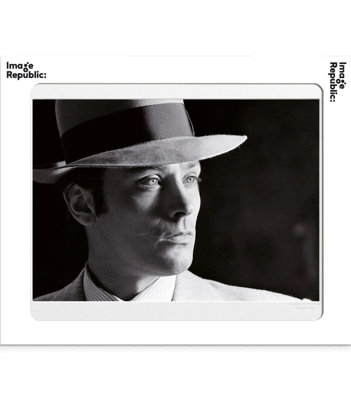 Affiche La Galerie « Delon Borsalino 1969 », un joli cliché en noir et blanc de l’acteur qui capture son regard perçant. Une scène issue de son rôle dans le film Borsalino, dans lequel il jouait un voyou aux côtés de Jean-Paul Belmondo. Collection La Galerie.
