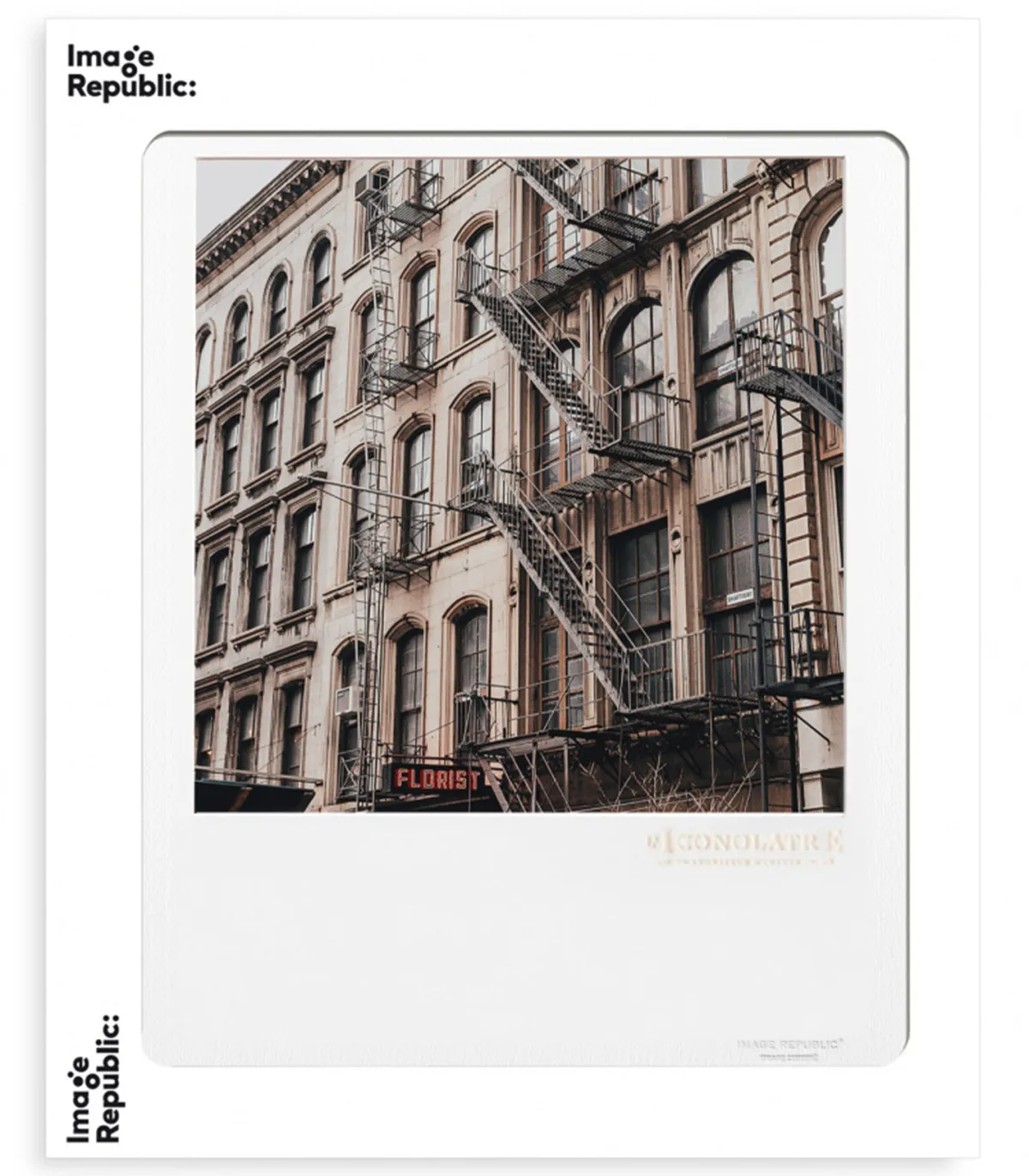 Affiche L’iconolâtre 0312 Escaliers aux éditée par Image Republic, un joli poster qui représente la façade d’un immeuble New-Yorkais avec les fameux escaliers de service métalliques qui donnent un aspect industriel. Il sera parfait dans un intérieur moderne.