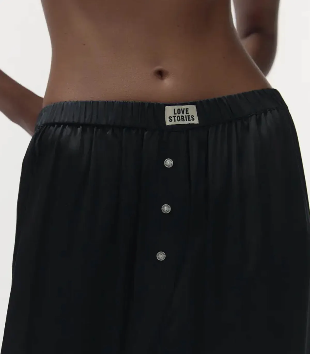 Pantalon de Pyjama Theodore Noir de la marque Love Stories. Avec son tissu fluide et 100% soyeux, ce pantalon offre une sensation douce et agréable sur la peau. Il se distingue par une ceinture élastique simple, décorée d’un logo brodé subtil. Il présente des jambes longues pour un look chic et décontracté. Idéal pour se détendre à la maison tout en restant raffiné, ce pantalon est la pièce parfaite pour vos moments détente.