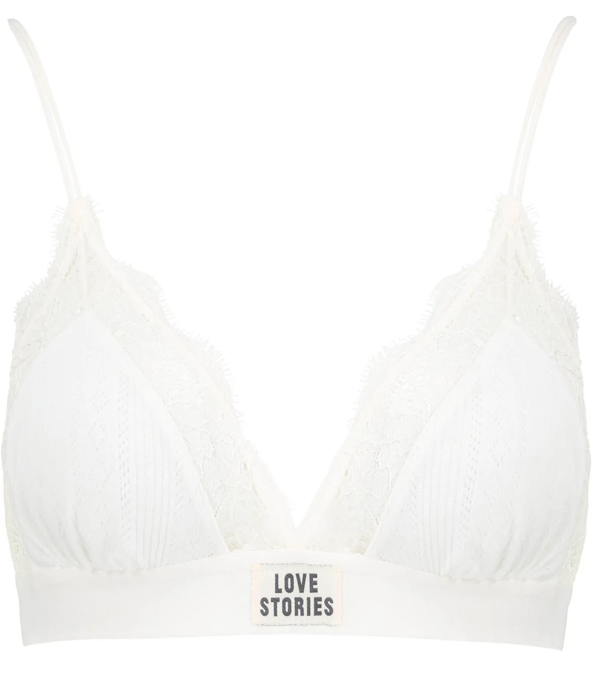 Soutien-gorge Love Lace 700 Off White signé Love Stories. De forme triangle, il mêle deux styles pour un match parfait : de la dentelle délicate et florale écru associée à un large élastique sous-poitrine dans un esprit sporty.