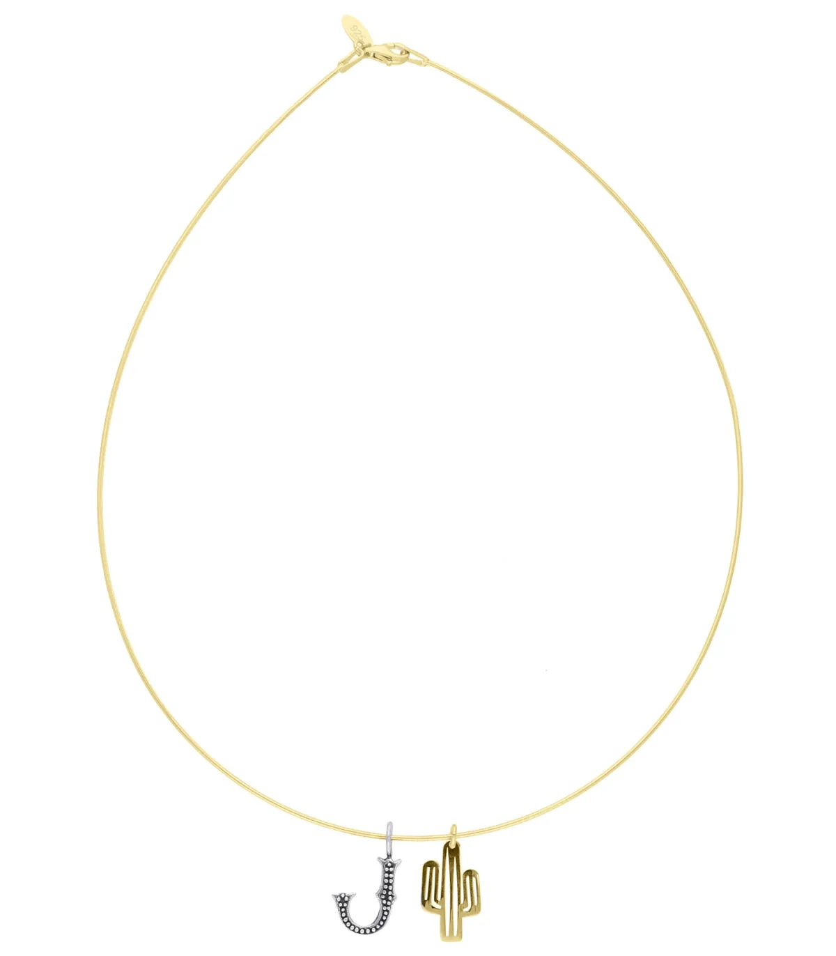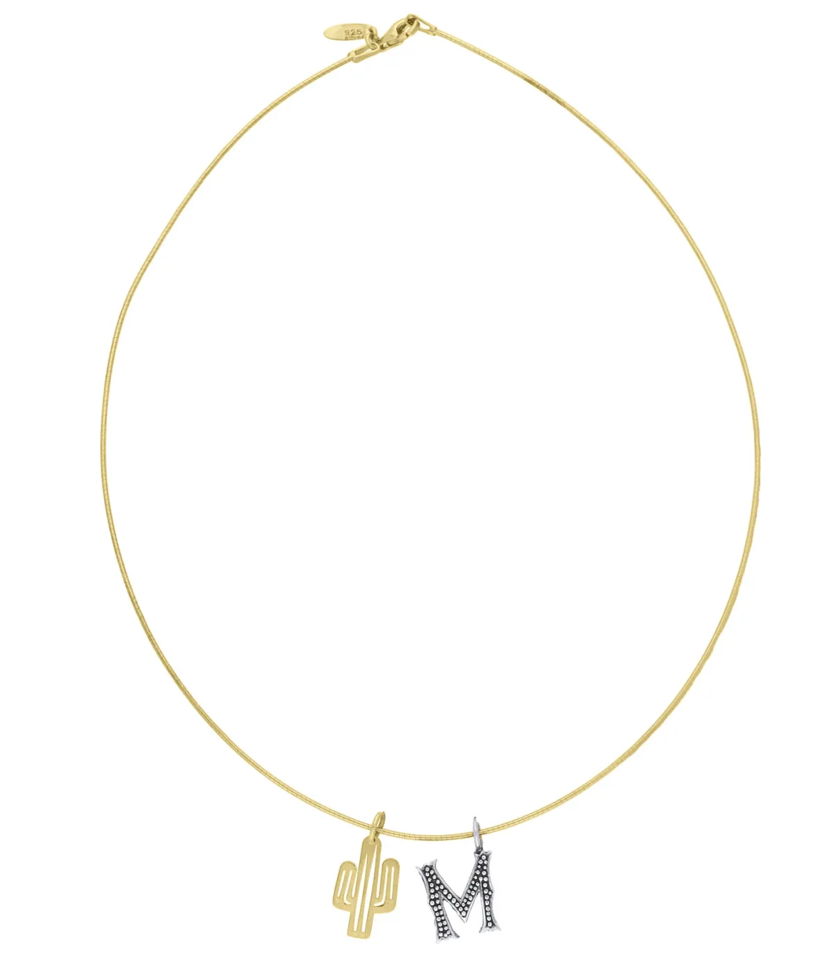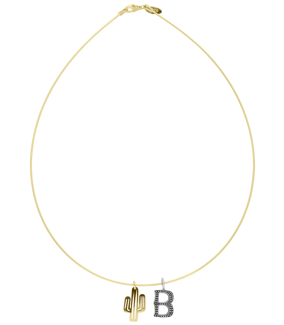 Collier tour de cou Maison Irem orné d’un cactus doré, ainsi que d’une lettre au style western vintage. Une invitation au Far West pleine de charme !