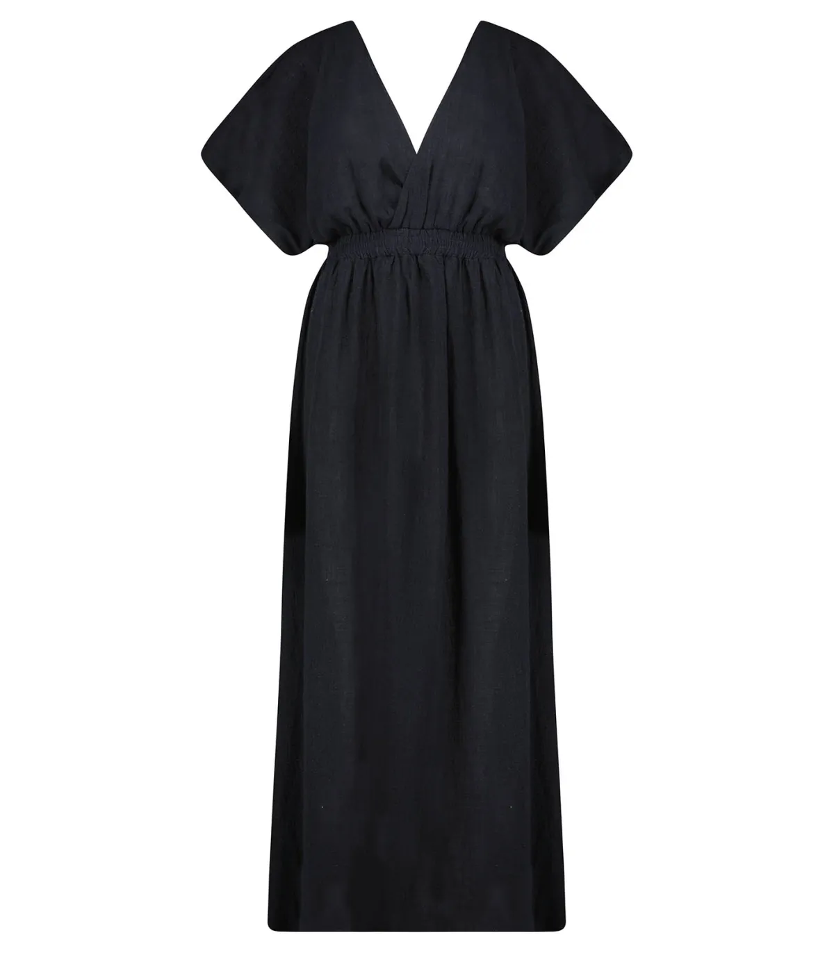 Robe longue Empire Black signée Maison Saint Julien, faite à la main de manière artisanale dans un atelier balinais familial et traditionnel. Grâce à sa coupe cache-coeur au buste et à sa taille marquée, elle met en valeur la silhouette. Une robe légère et aérienne, idéale pour une soirée sur la plage avec une paire de sandales.
