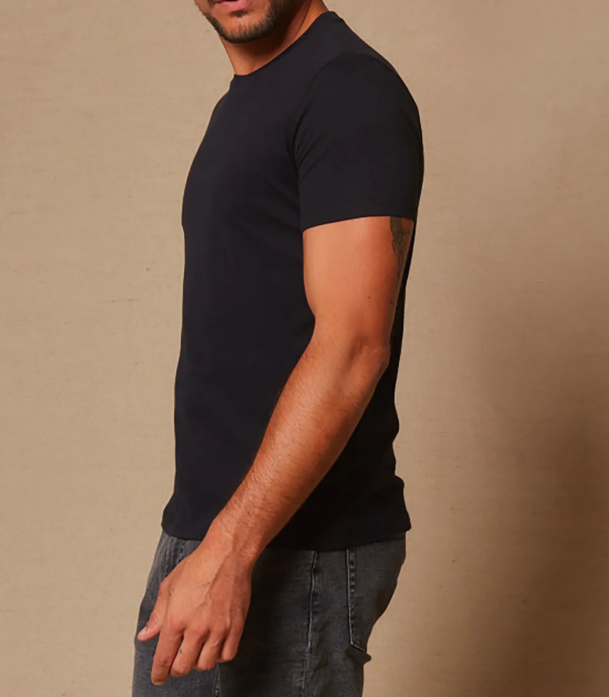 Tee-shirt Julien pour homme de la marque Majestic Filatures, le tee-shirt noir basique indispensable au vestiaire masculin.