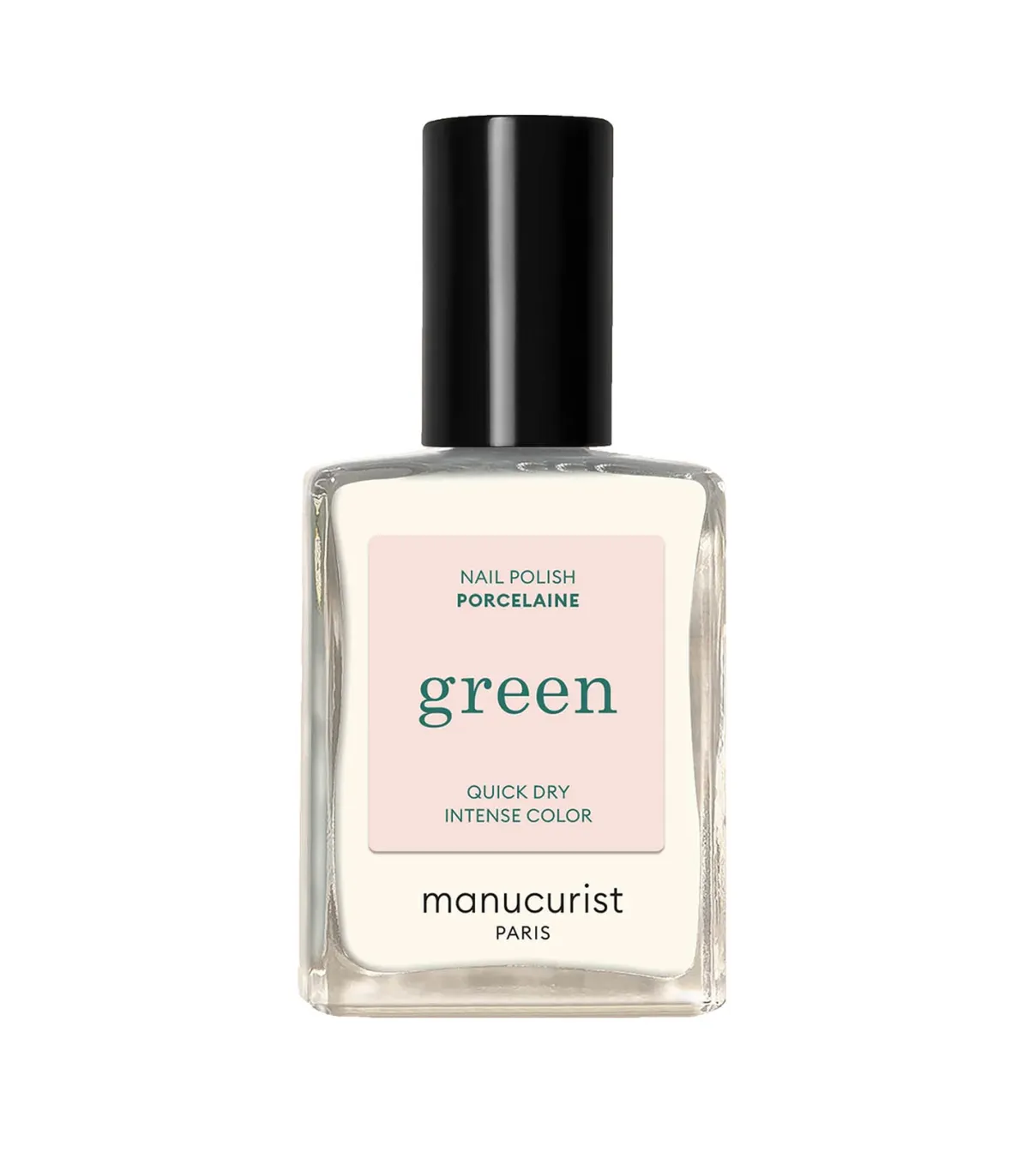 Vernis à ongles Green Porcelaine signé Manucurist. Un blanc cassé qui capture la lumière avec subtilité, offrant une teinte off-white synonyme de calme et de volupté.