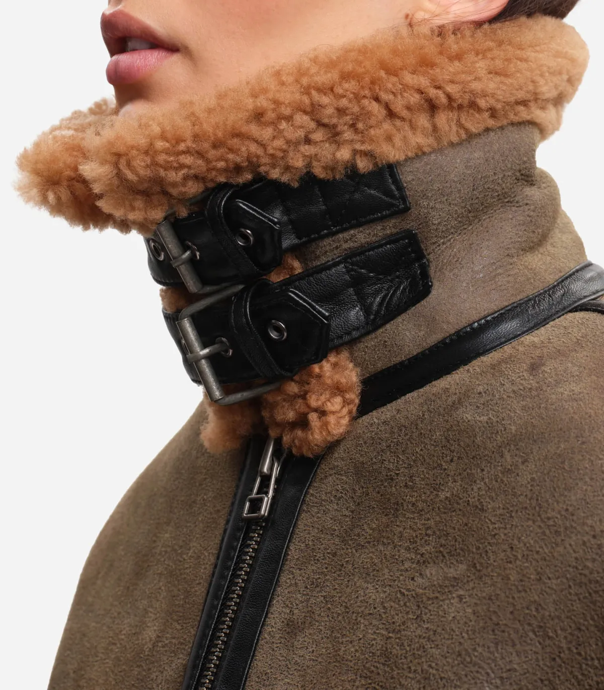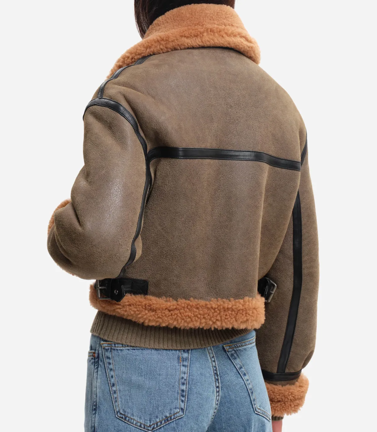 Blouson April de la marque Margaux Lonnberg. Une veste courte dans un esprit aviateur en cuir kaki patiné avec ses détails de fourrure au coloris chaud au col. Ses finitions en cuir noir lui confèrent une allure sophistiquée et travaillée.