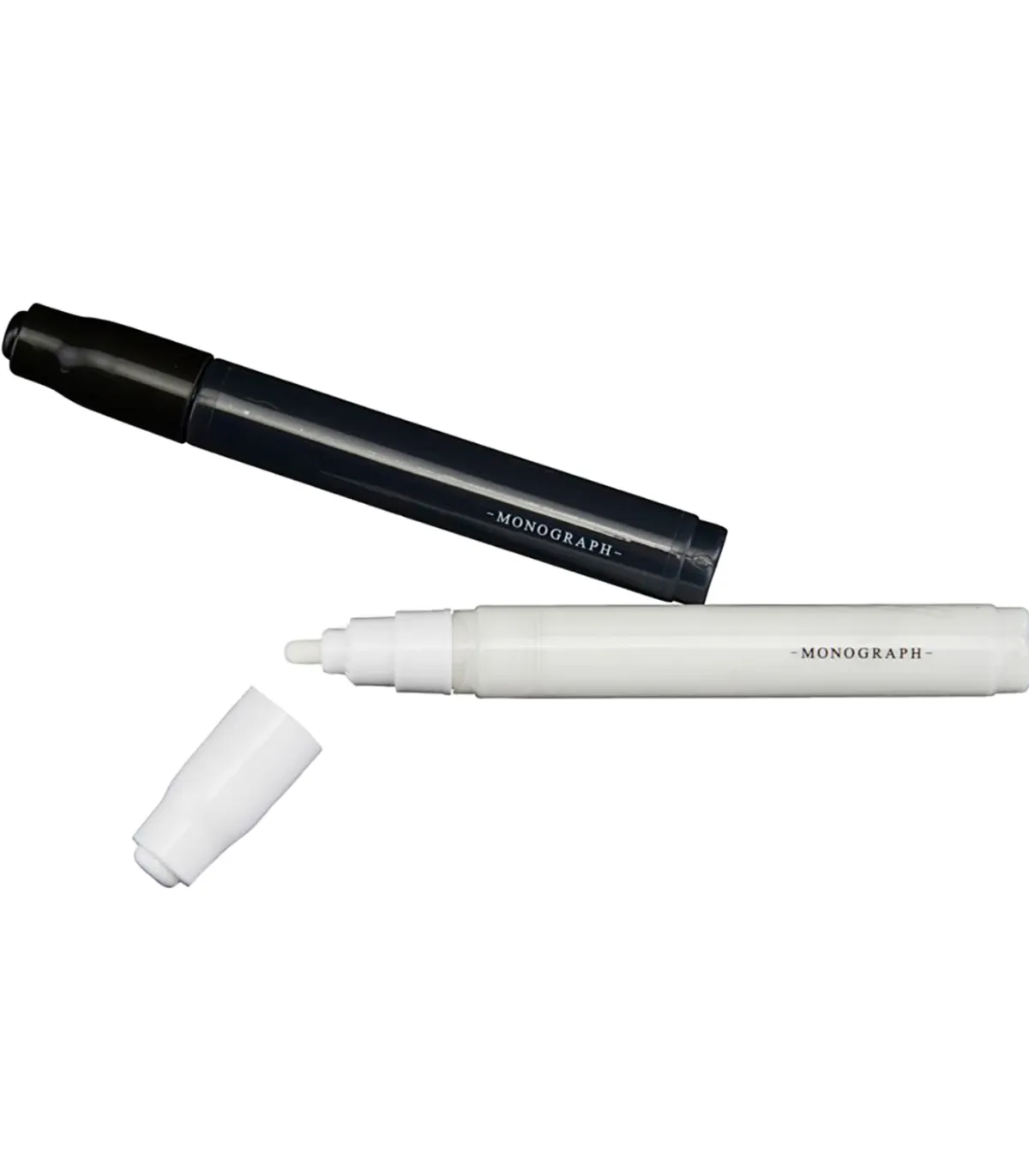 Lot de 2 marqueurs pinceaux de la marque Monograph, 1 noir et 1 blanc, au design ultra minimaliste pour tous les passionnés de papéterie raffinée.