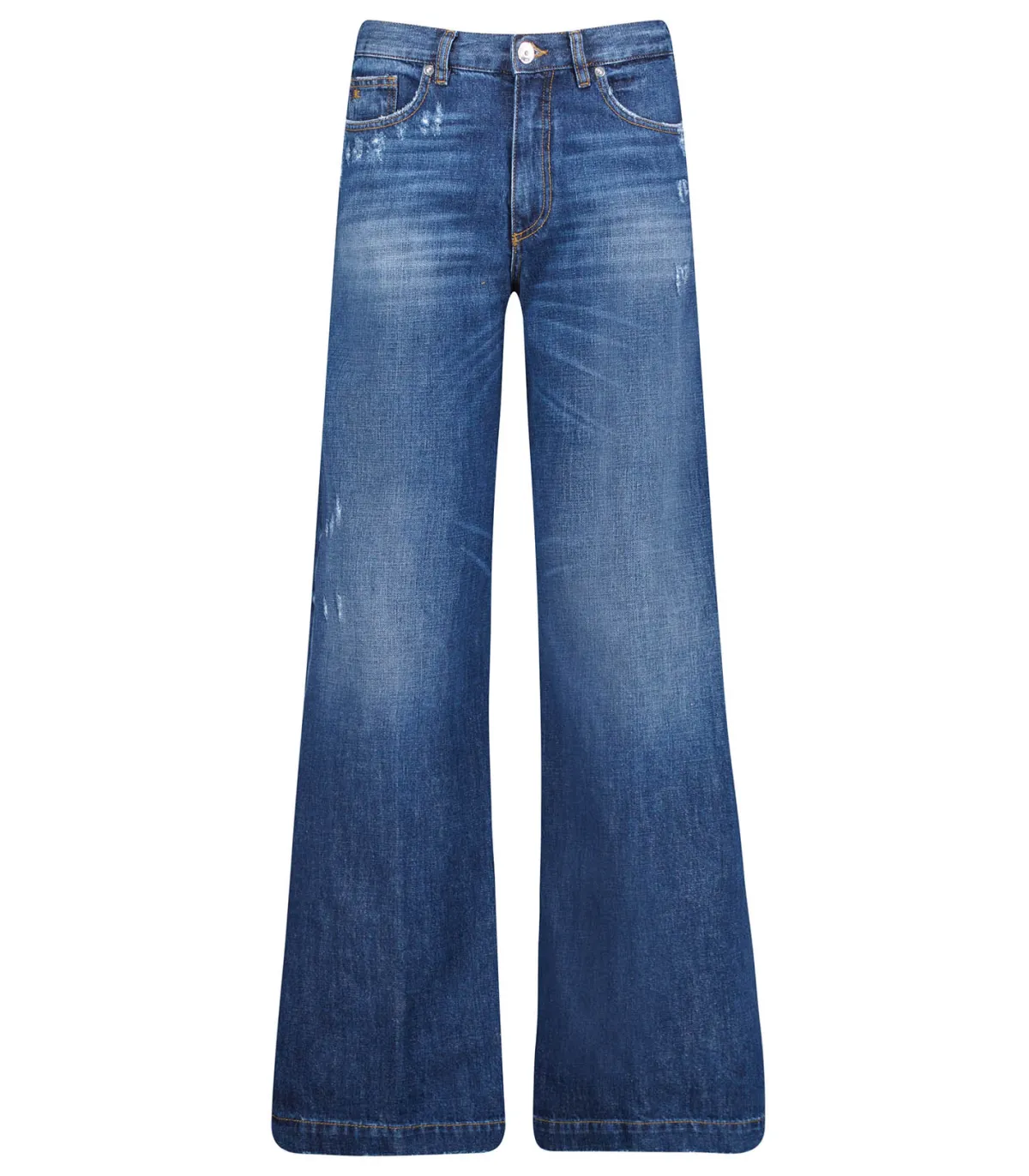 Jean Nadia Palazzo Over Destroy Bleu de la marque Nine in the Morning. Un modèle large et taille haute que l’on associe à un débardeur et une paire de baskets. Fabriqué en Italie.