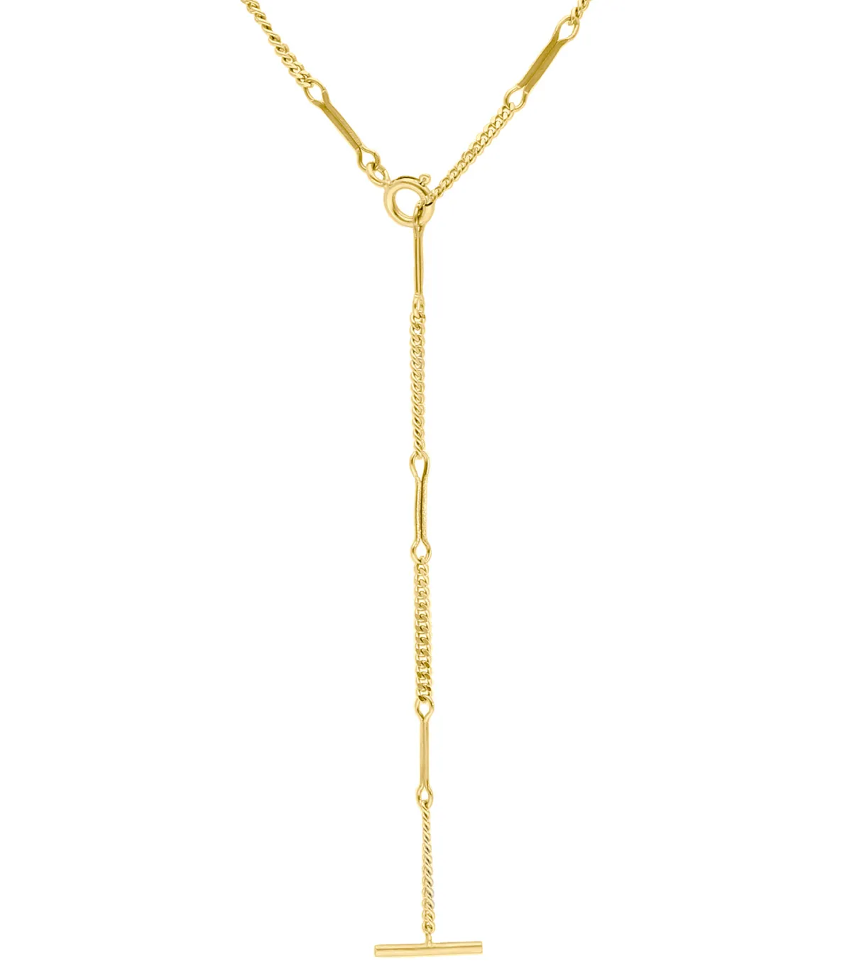 Collier Petra N°2 signé Pascale Monvoisin, notre nouvel indispensable brillant de beauté. Avec sa chaîne à intervalle de maillons longs pincés au centre et de petits maillons ronds, elle propose une nouvelle dynamique. En son centre, une longue chaîne descend dans le décolleté pour se terminer par un ornement en T, moderne et raffiné.