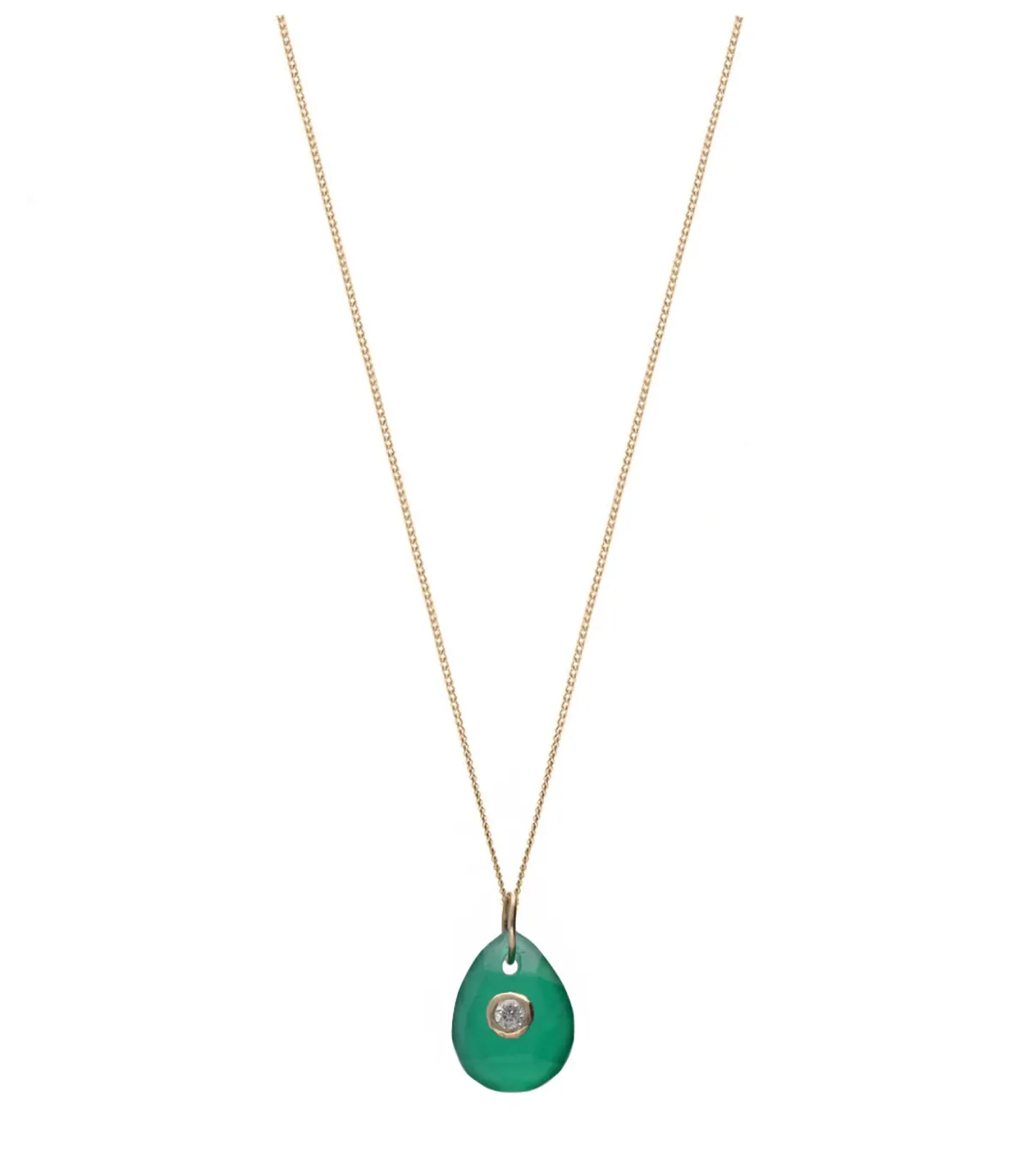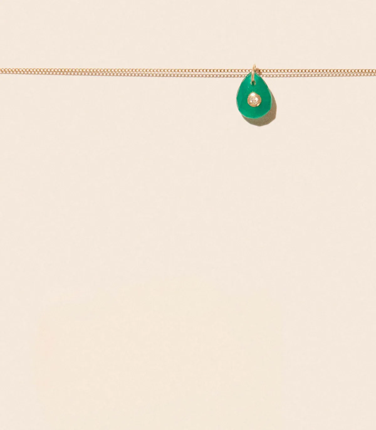 Collier ras de cou Orso en version Green Onyx par Pascale Monvoisin. Une élégante pierre d’onyx verte taillée et sertie d’un diamant vient habiller le cou d’une délicate touche précieuse, suspendue à une discrète chaîne en or.