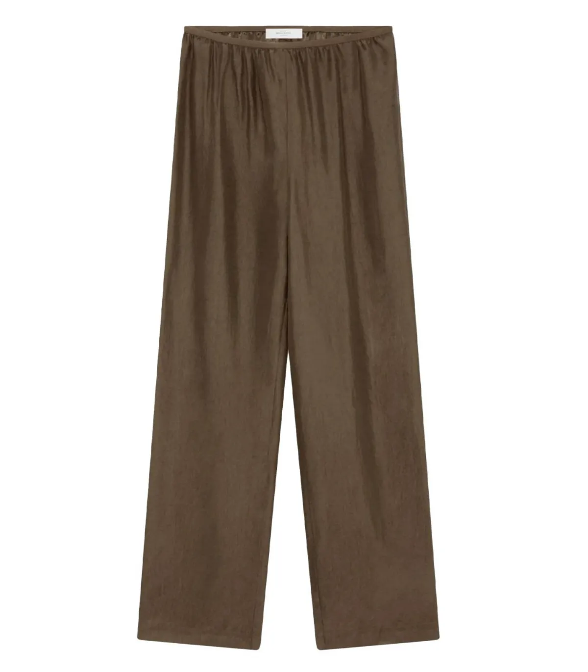 Ce pantalon fluide présente une coupe droite et une taille élastiquée, offrant un confort optimal.