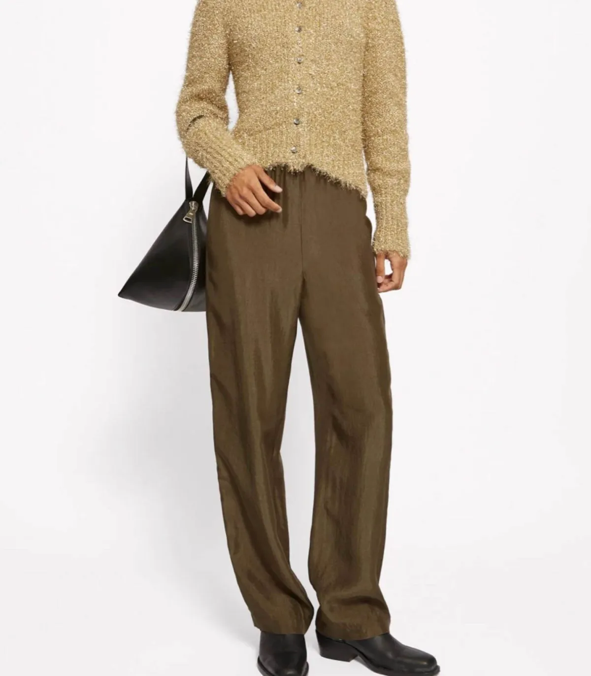Les pièces du thème Mousse en satin fluide, travaillées sur l’envers pour mettre en valeur son fini mat, apportent une touche de luminosité à votre garde-robe hivernale.