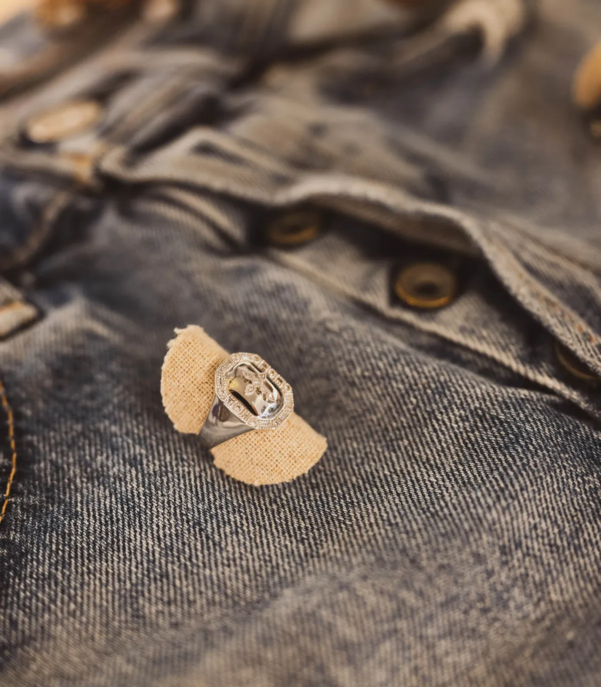 Pour respecter les traditions, les puristes pourront porter cette bague Céleste chevalière de la maison Stone Paris à leur auriculaire gauche. Les plus modernes choisiront de l’enfiler à un index.