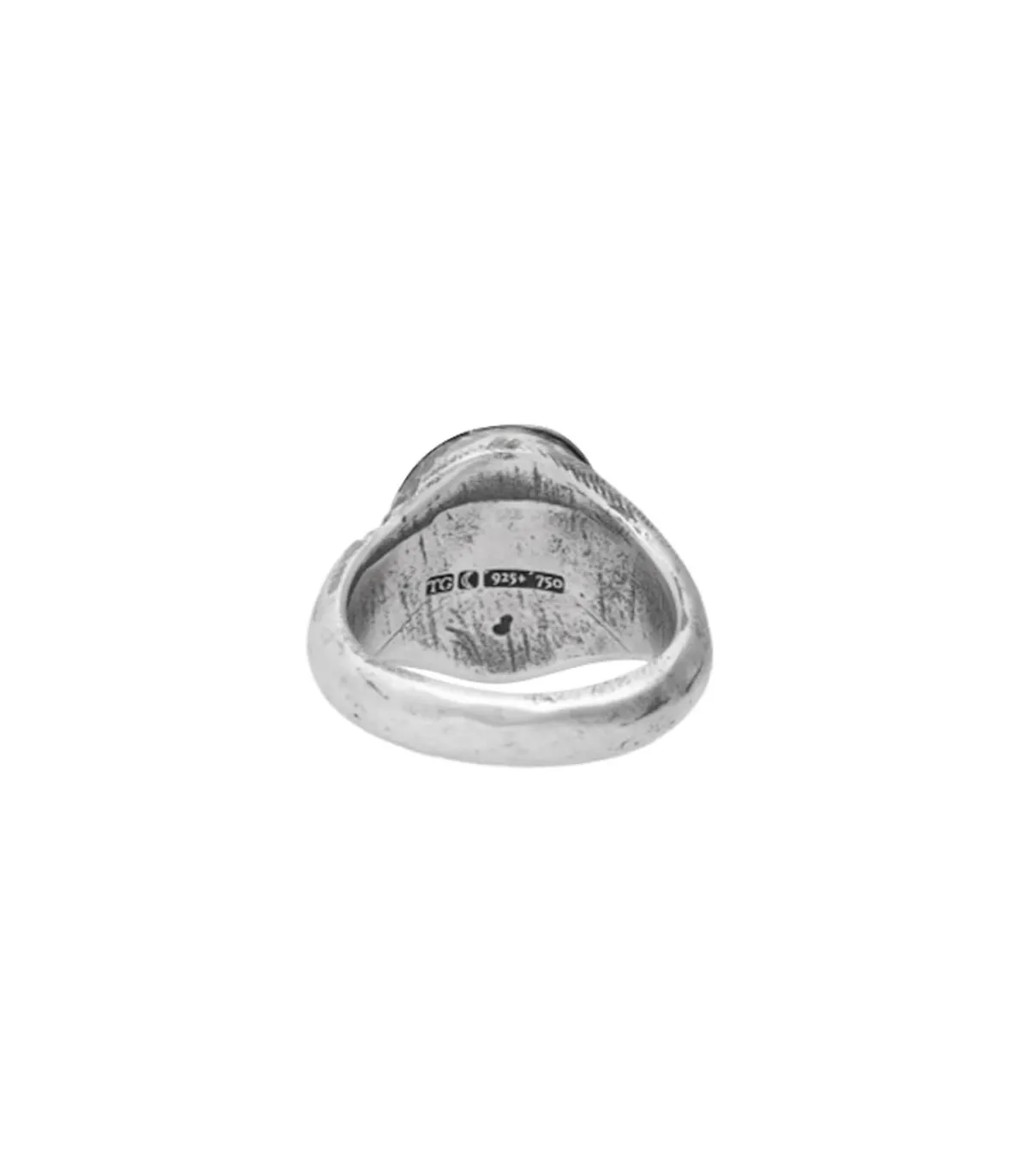 Bague Please Stay Red Gold de la marque Tó Garal, une chevalière à l’aspect brut et authentique conçue en argent sterling et or rouge 18K qui dévoile une gravure comme manuscrite « If I die please stay ».