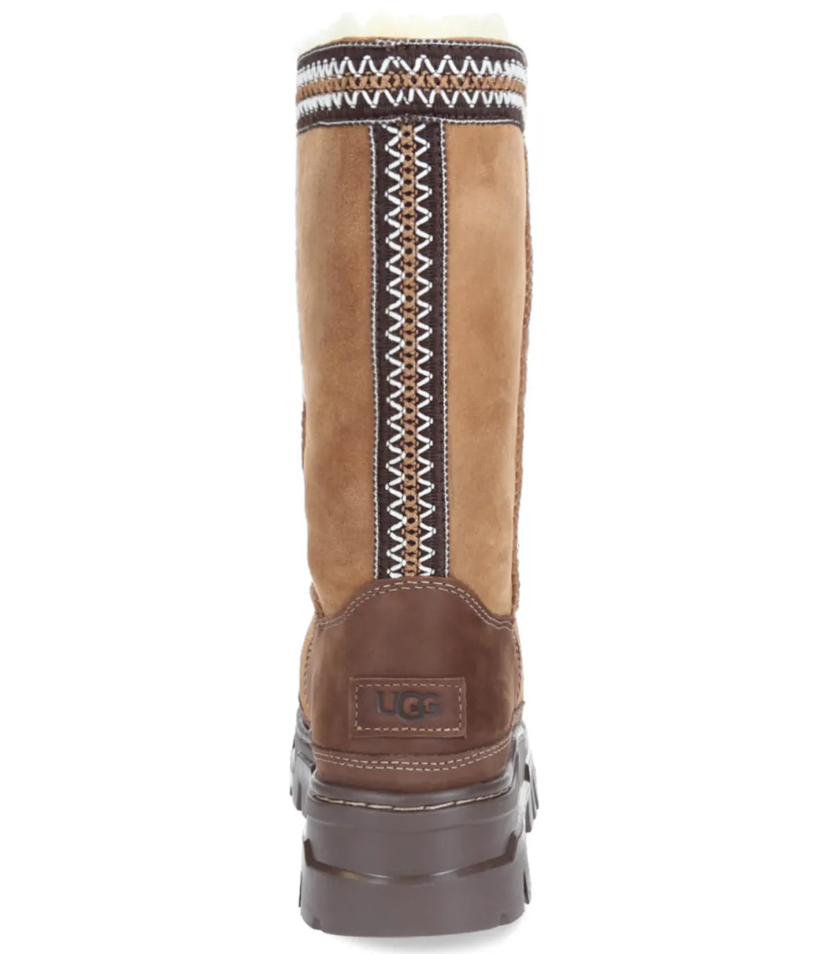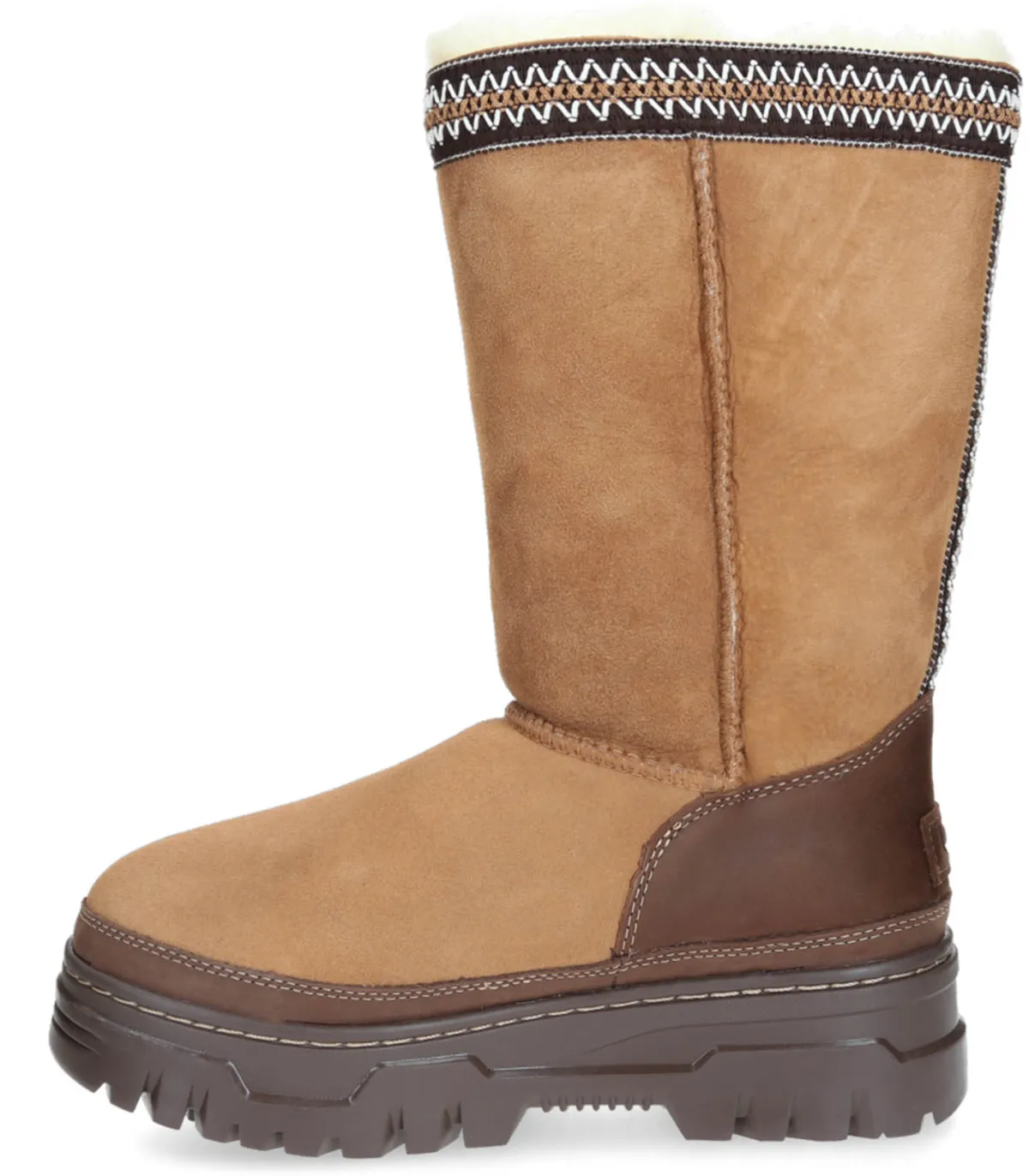 Tirant arrière en fibres de polyester 100 % recyclé, finitions UGGbraid, empeigne en daim, tige en peau de mouton double face de 17 mm, pare-boue en cuir, contrefort de talon en cuir