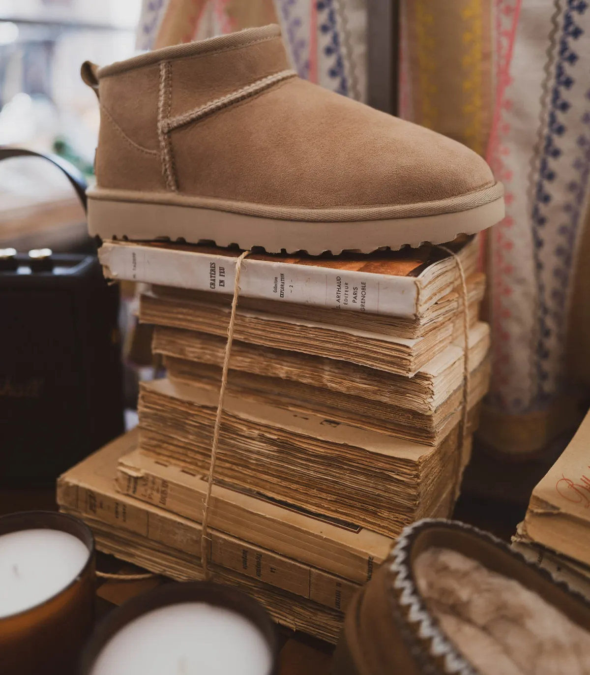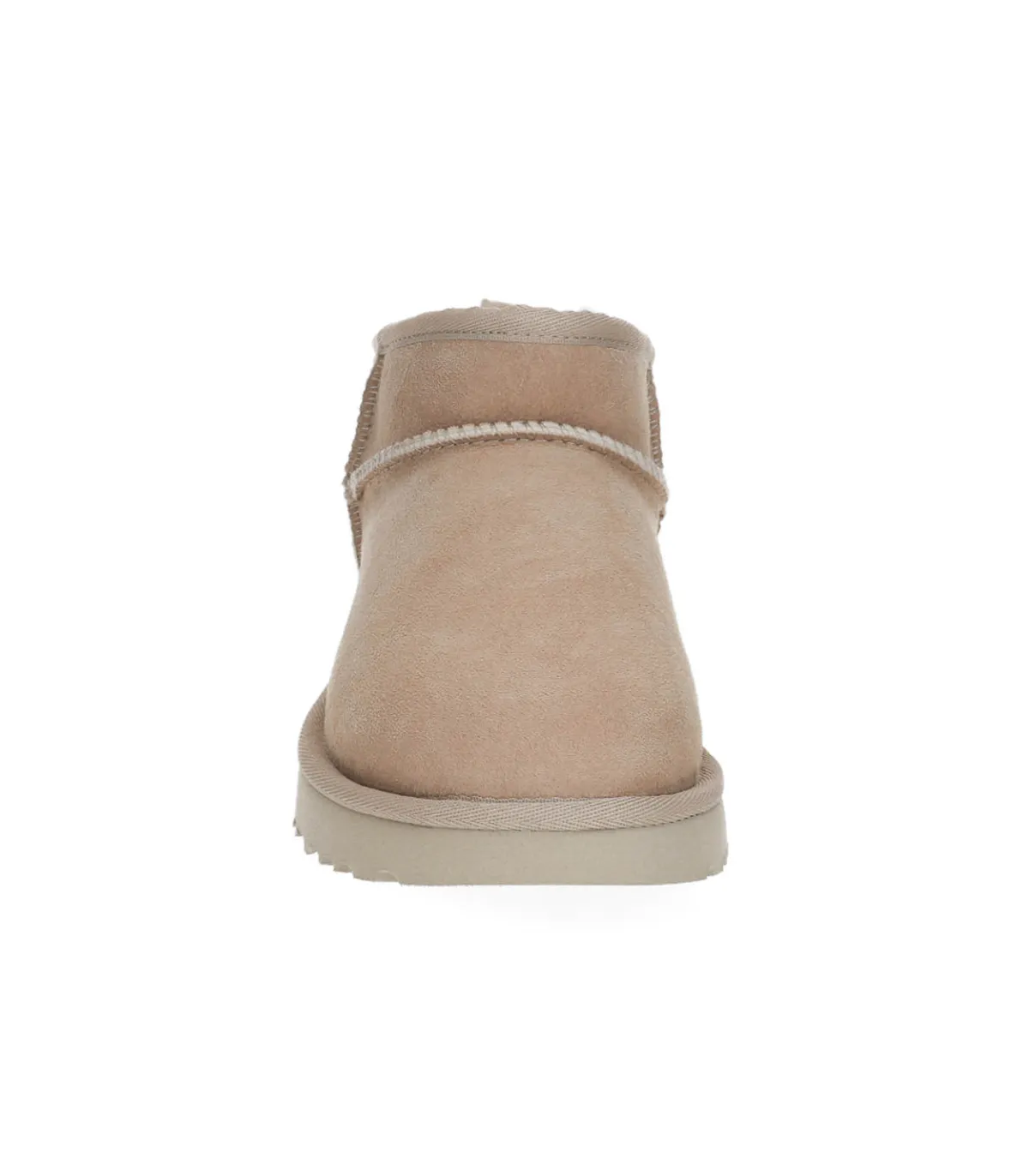 La bottine classic ultra mini daim est un modèle polyvalent facile à enfiler et à retirer. Cette chaussure intègre tous les éléments appréciés de la version originale, notamment la peau de mouton emblématique, la doublure ultradouce UGGplush™, ainsi qu’une semelle souple et légère. Ce modèle s’adapte à toutes les tenues, permettant de créer des looks variés selon vos préférences.