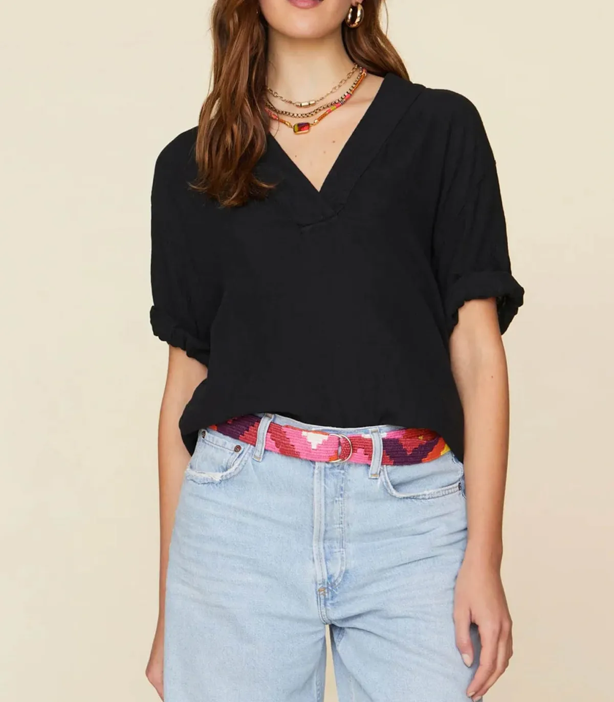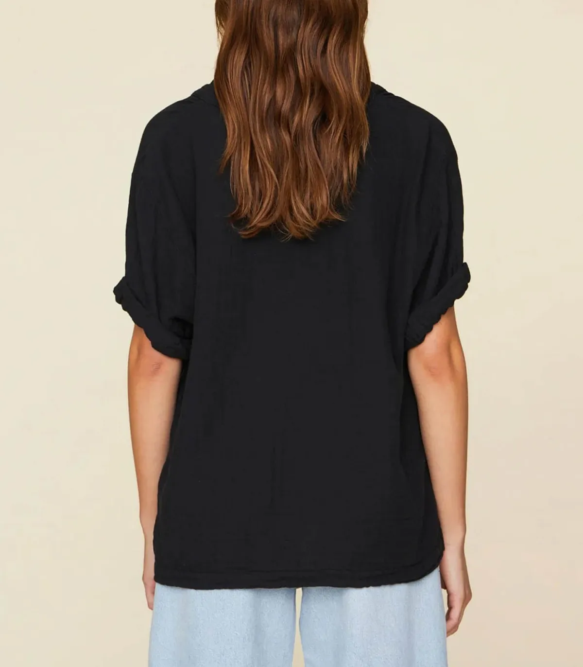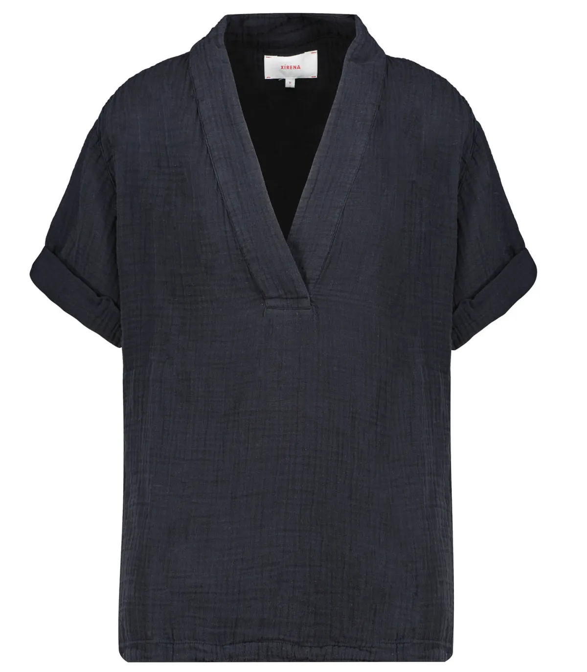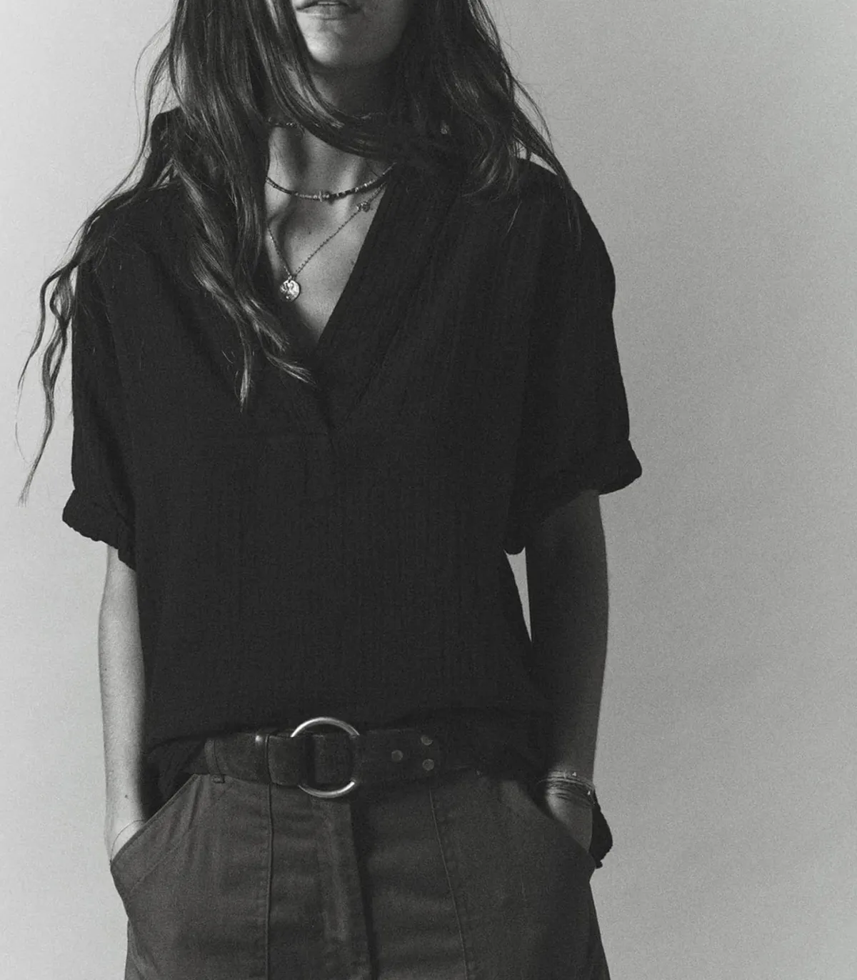 Avec sa coupe ample et son encolure en V façon saharienne, la Blouse Avery signée Xirena est pensée pour vous suivre lors de journées ensoleillées, l’été ou à la mi-saison accompagnée d’une jolie maille. Sa teinte noire intemporelle est parfaite pour le quotidien.