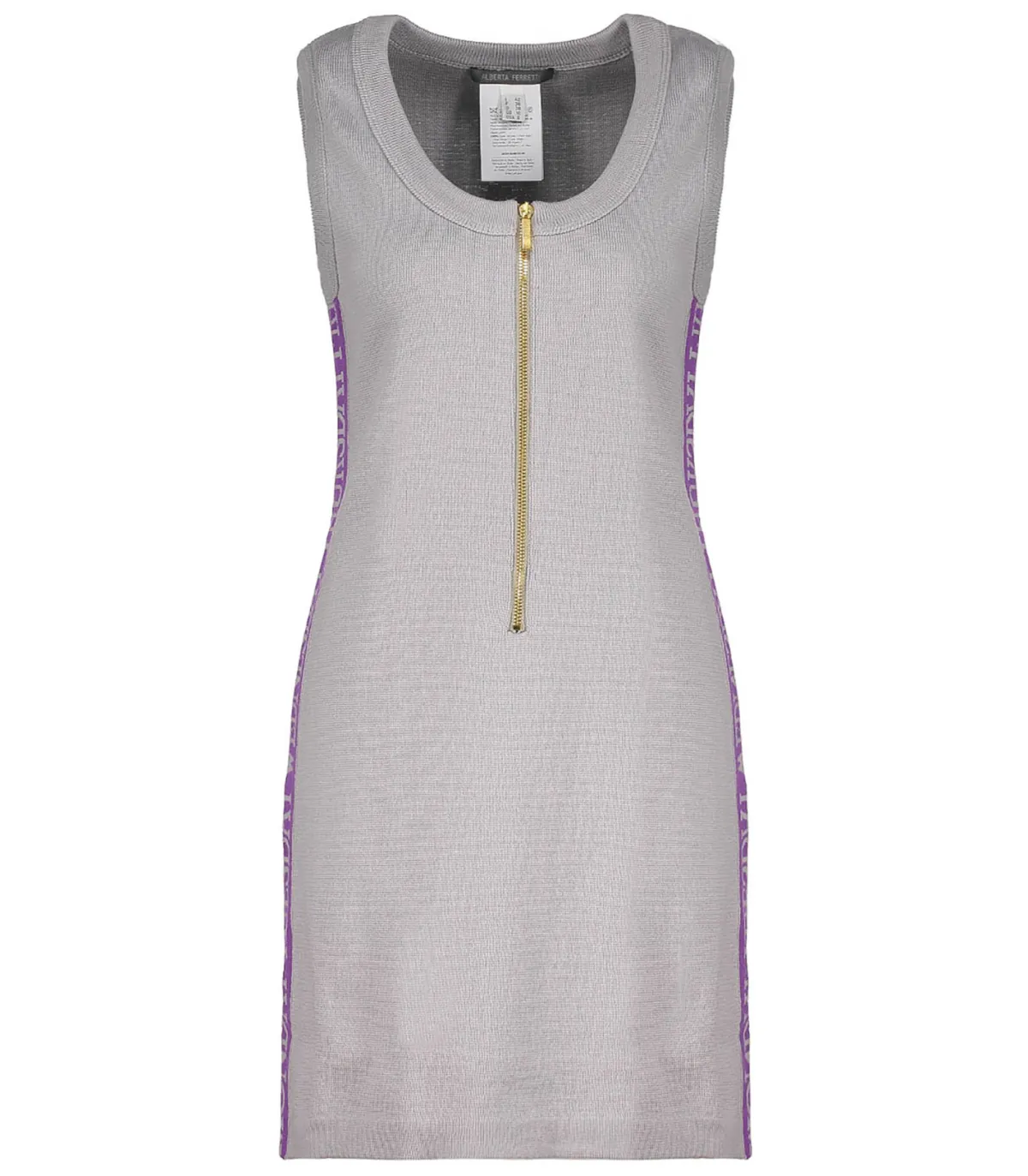 Retrouvez tout le savoir-faire d’Alberta Ferretti avec cette robe zippée sans manches, à la fois décontractée et élégante. Elle se démarque par un large ruban coloré sur les côtés du modèle qui arbore les inscriptions « Monday-Tuesday » et une fermeture zippée à l’avant.