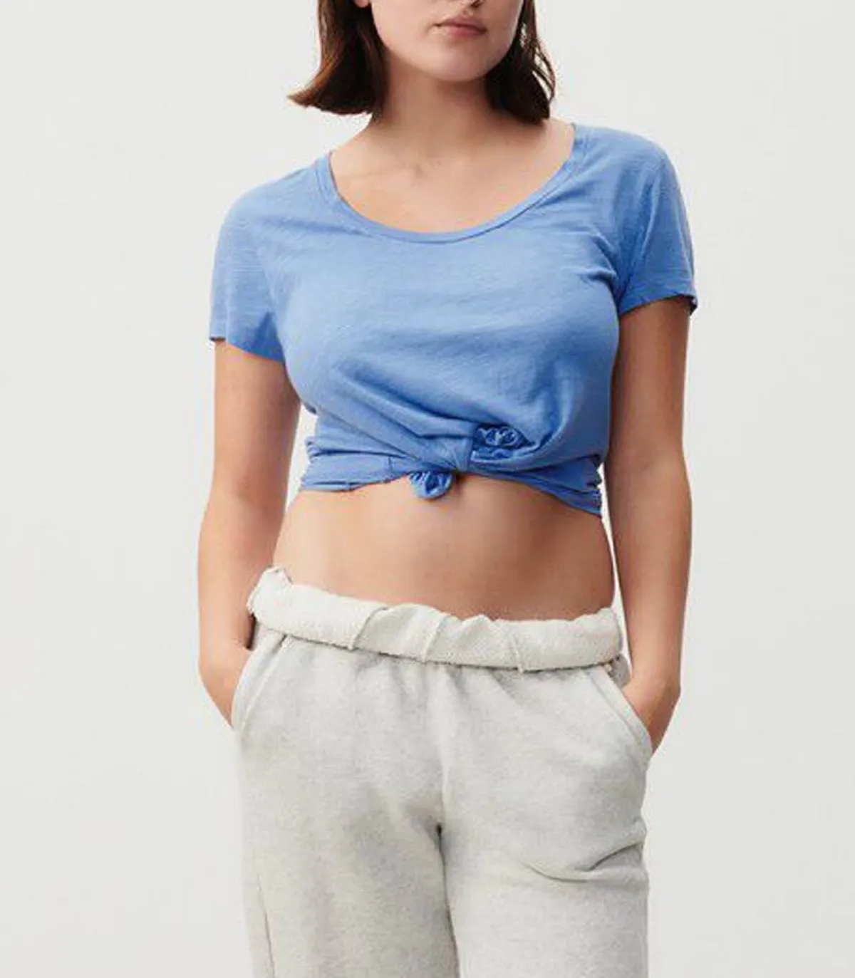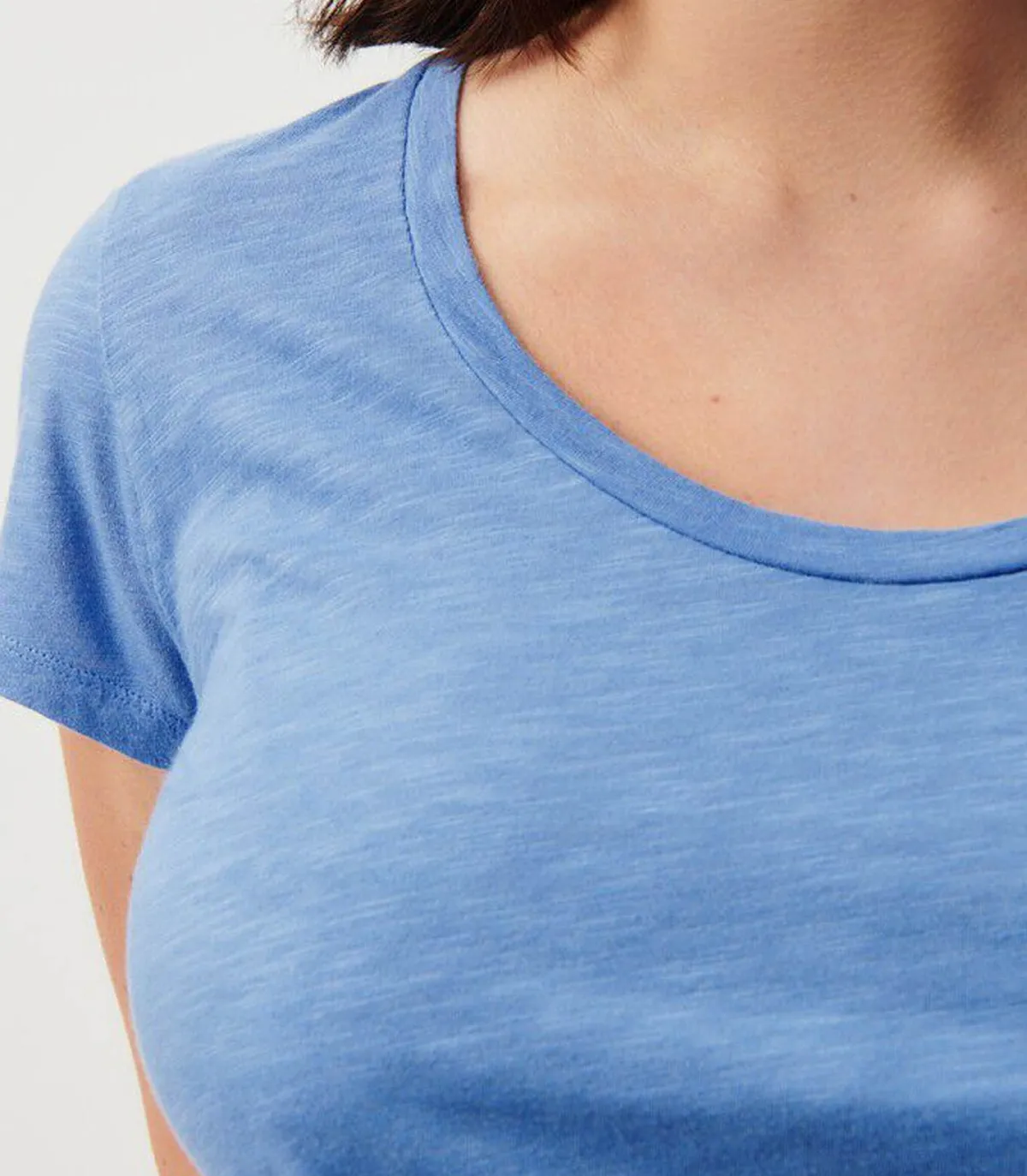 Tee-shirt Jacksonville American Vintage à manches courtes, à la coupe inspirée de modèles vintage. Son col en U et son tissus doux et souple offrent une allure décontractée. Coloris bleu doux très printannier.