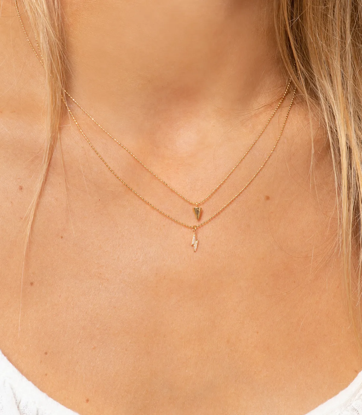 Collier And…Paris en or jaune composé d’une chaîne à petites boules facettées et d’un charm mobile spike en forme de pointe. Une jolie pièce raffinée aux accents rock, qui sera parfaite pour agrémenter vos compositions de colliers.