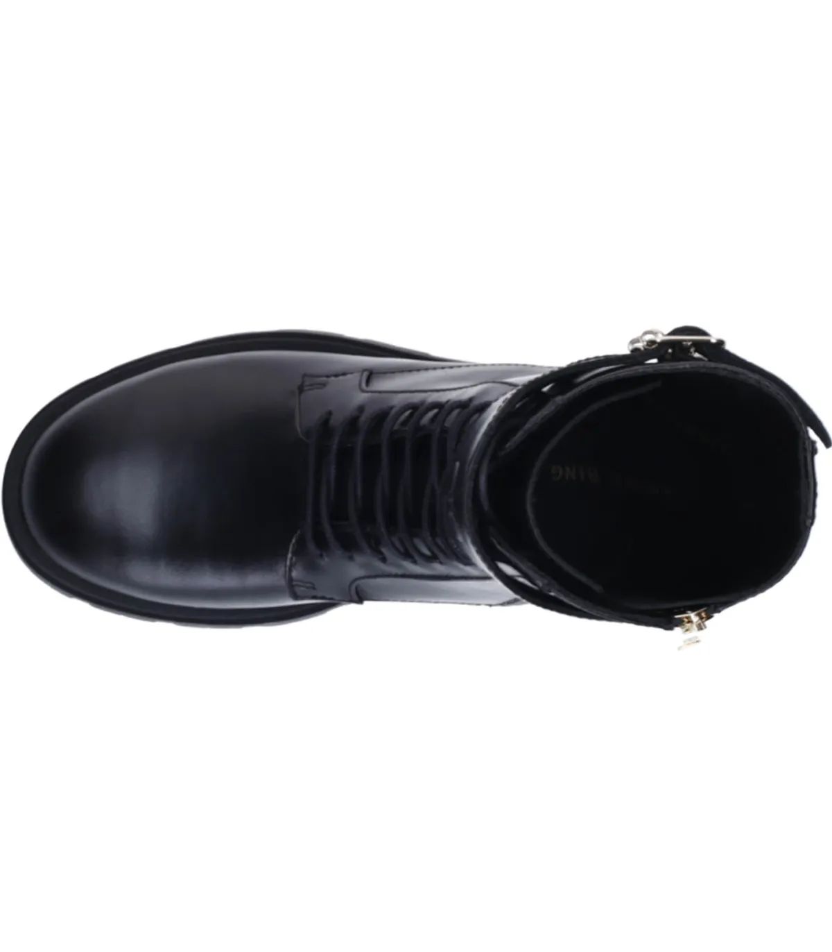 Boots Maeve Noir de la marque Anine Bing. Les bottines Maeve sont une réinterprétation moderne des bottes de combat, confectionnées en cuir 100 % lisse et souple avec une finition mi-brillante. Ces boots robustes et stylées se distinguent par leur double boucle sur la tige, ornée du monogramme ANINE BING en relief, et leur fermeture éclair dorée. Équipées de lacets cirés durables et de semelles à crampons épaisses, elles deviennent un choix idéal pour un look audacieux et rock.