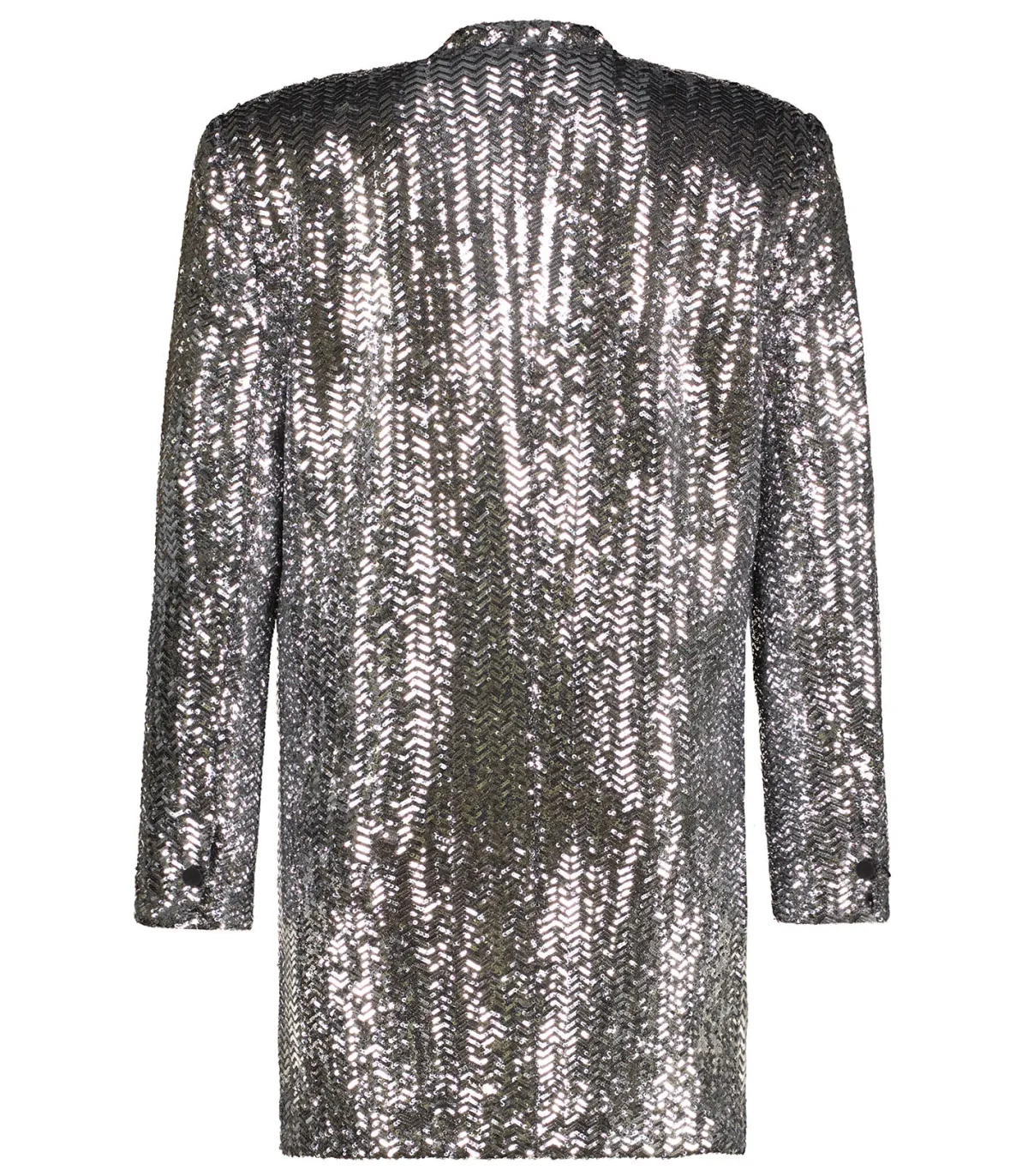 La mini-robe Veneda séduit par son allure audacieuse et sophistiquée. Confectionnée dans un somptueux tissu à chevrons pailleté, elle illumine vos tenues avec sa texture scintillante et son poids moyen parfait pour une tenue structurée. Entièrement doublée, sa coupe droite oversize est sublimée par une fermeture à double boutonnage, évoquant une élégance tailleur maîtrisée.