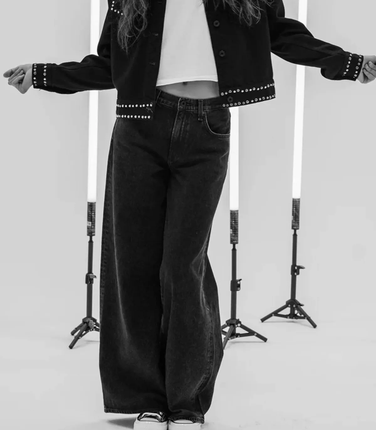 Jean Atominc Wide Leg signé ASKK NY. Coupe très évasée et longueur raccourcie pour une allure tendance et casual à la fois. Taille très haute qui flatte la silhouette et couleur stone profonde qui va avec tout.