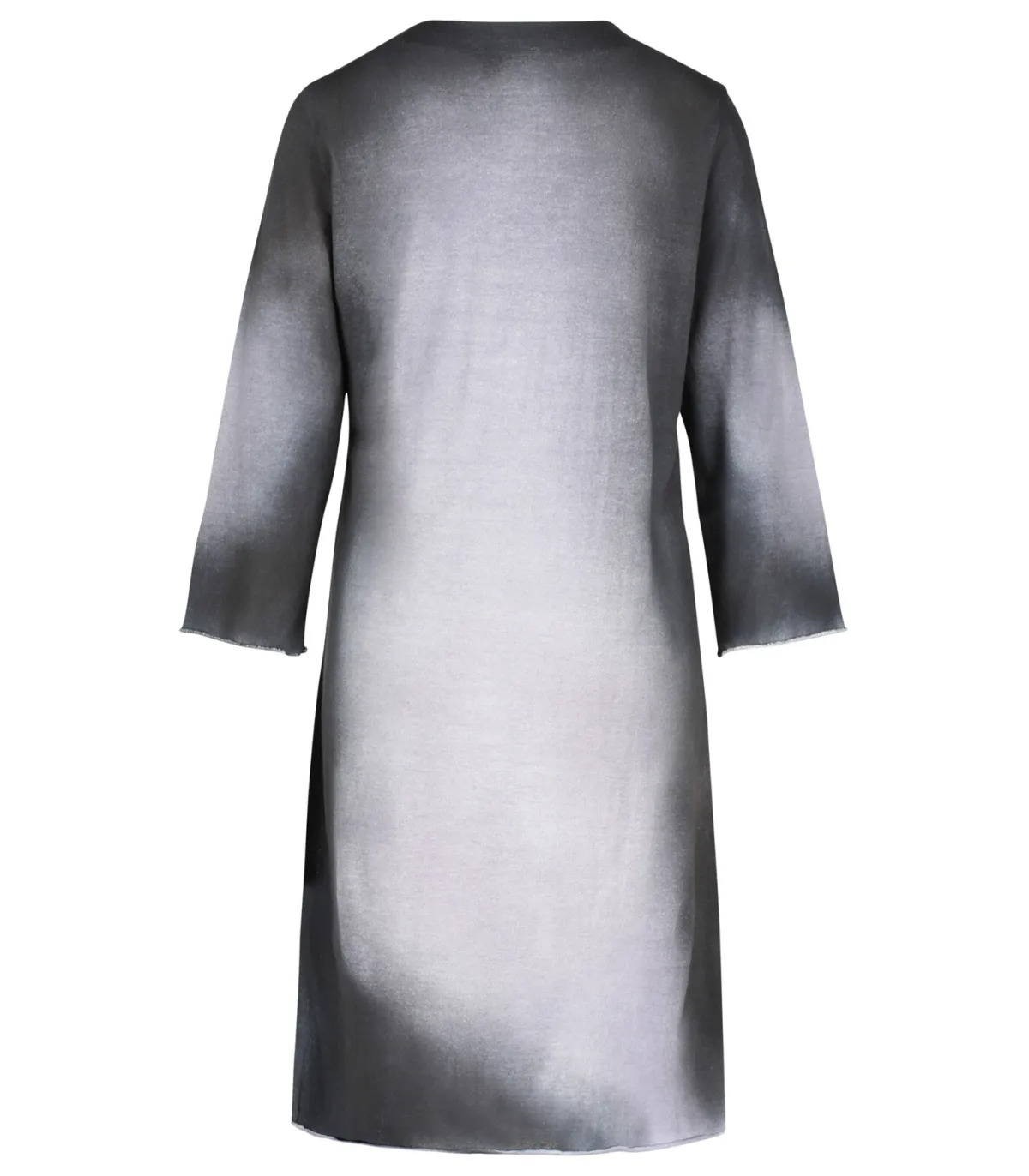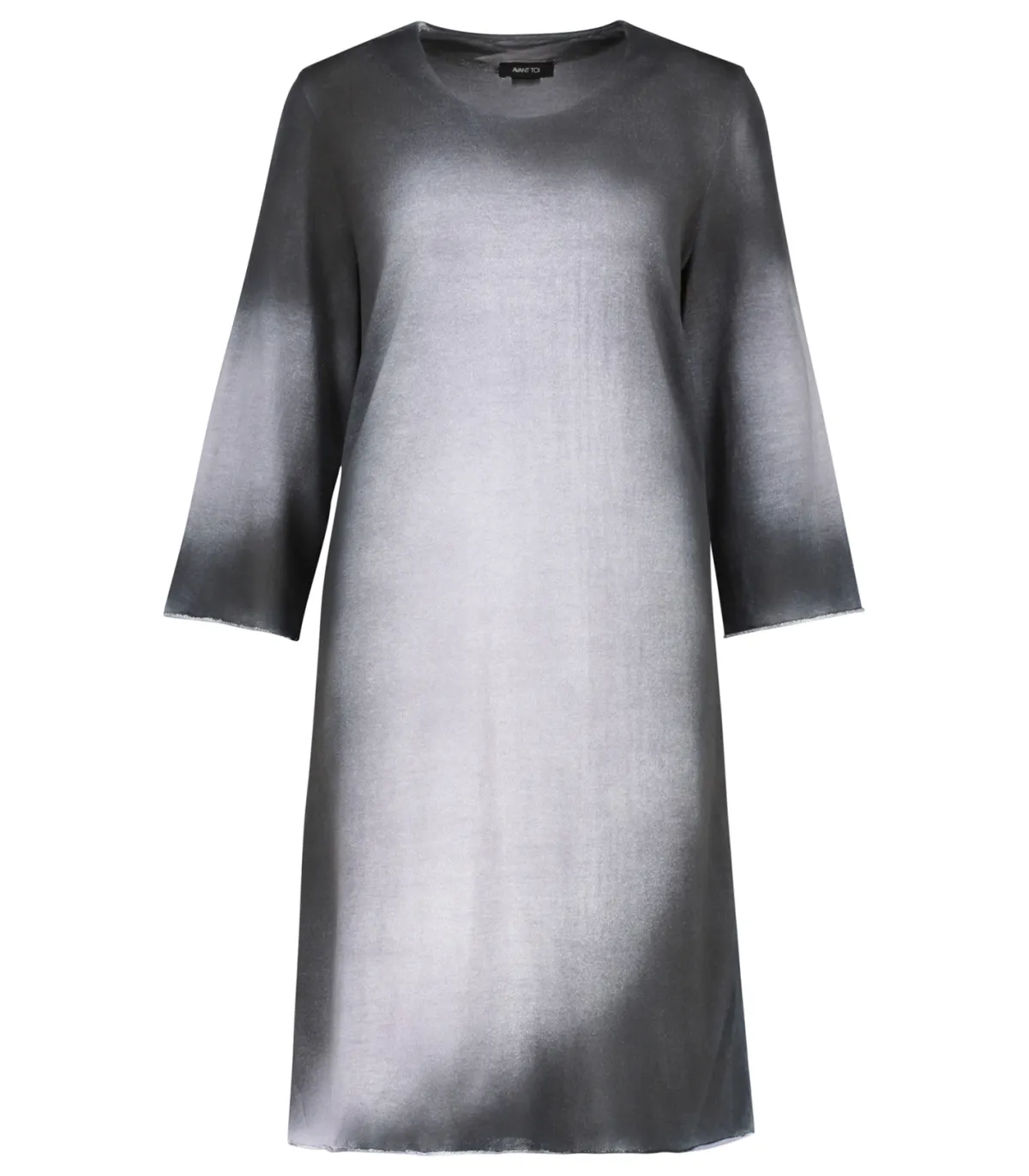 Robe Abito de chez Avant Toi, coupe droite, col rond, manches 3/4 avec emmanchure classique et bords francs. Jeux de dégradé dans la teinte avec un gris perles sur le centre et un gris plus foncé sur les côtés.