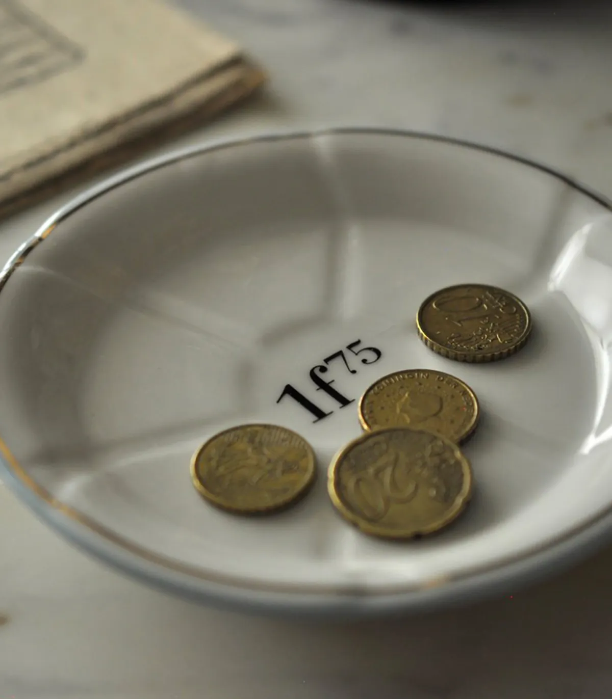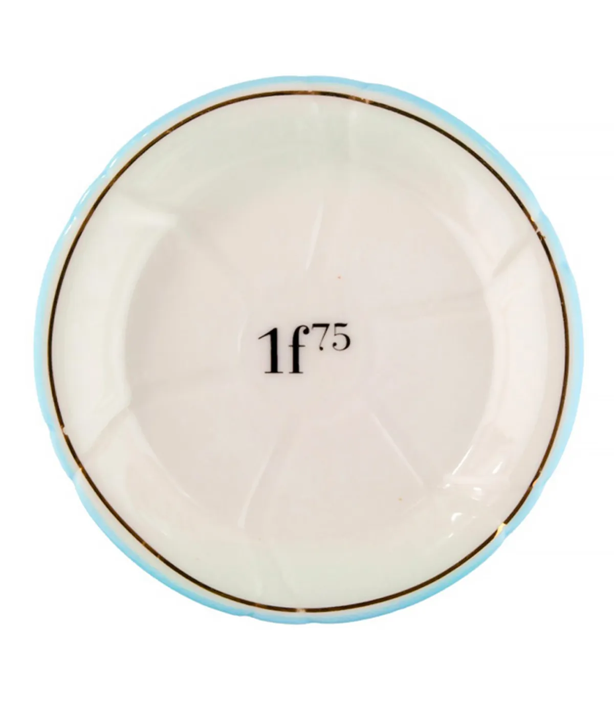Voyagez dans le temps avec la soucoupe 1f75 en porcelaine bleu clair / or de Bonnecaze, une reproduction des traditionnelles soucoupes de bistro à absinthe, qui servaient à la fois de sous-verre et d’indiquer le prix de l’absinthe servie à l’époque. Le bord coloré servait à indiquer au serveur le montant à facturer au client en lisant les différentes couleurs de soucoupes une fois empilées