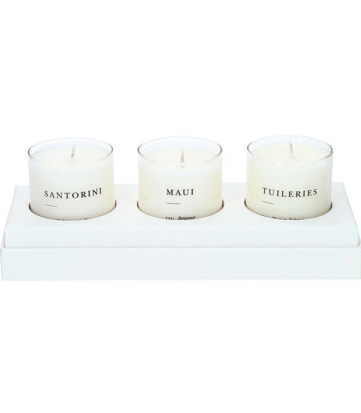 - Santorini : un parfum fruité à base de figuier et de groseilles, sur une base de bois de santal et d’ambre chaleureux.