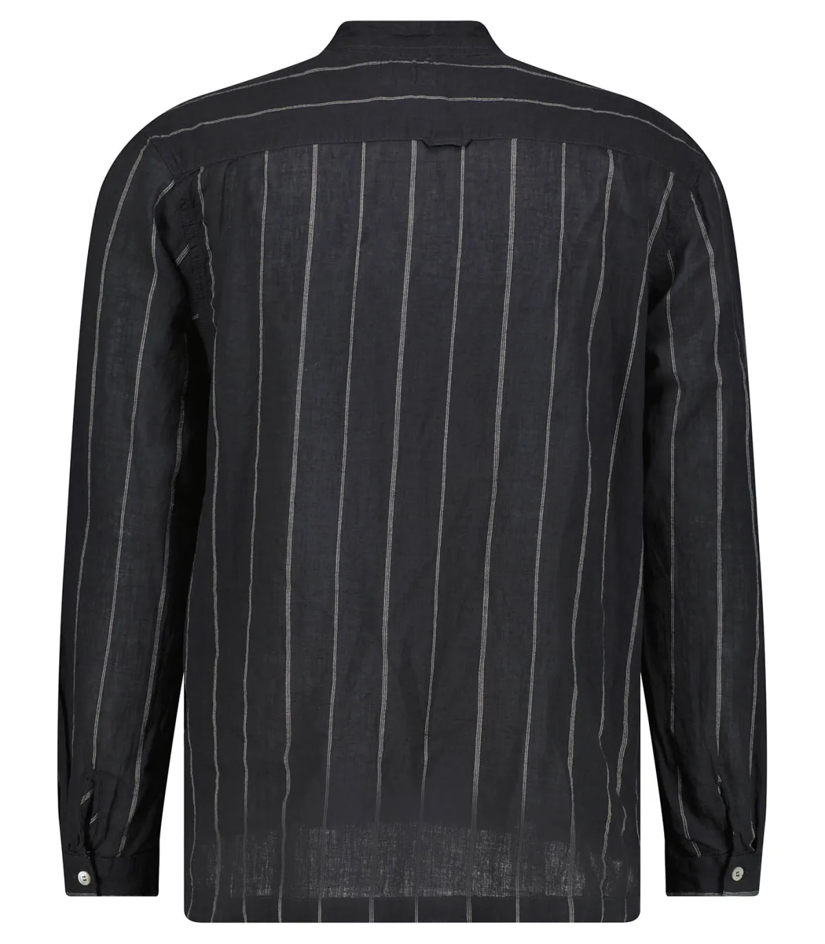Chemise pour homme Marlon Brown de la marque Bsbee. Chemise légère et fluide en coton, idéale pour les beaux jours. Sa coupe présente un petit col mao élégant et décontracté, tandis que son design présente une toile marron agrémentée de fines rayures beiges.