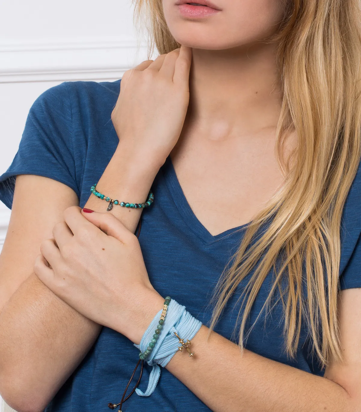 Les bracelets Catherine Michiels étant teints de manière artisanale, de légères variations de couleur peuvent apparaître d’un modèle à l’autre.