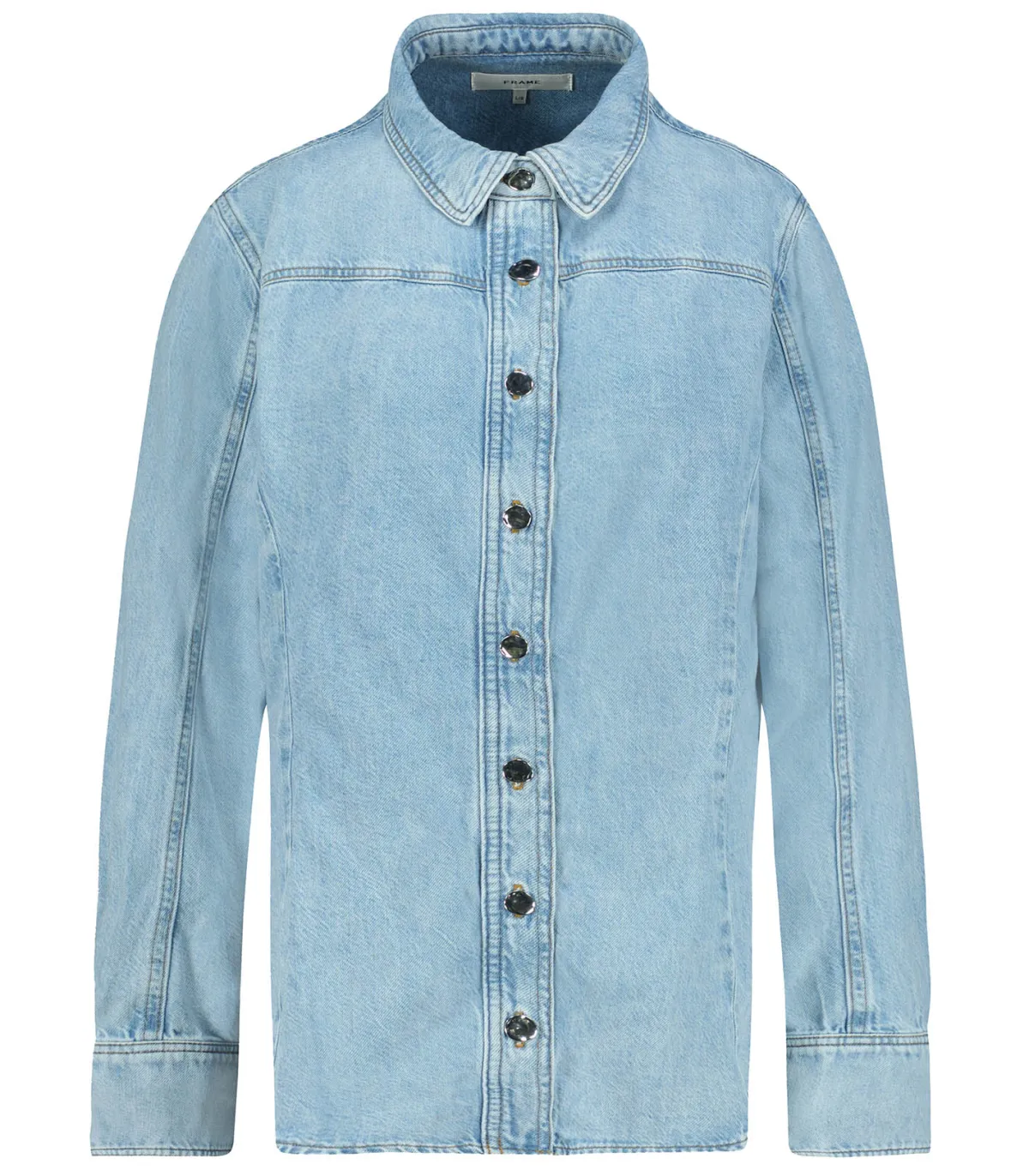 Un essentiel revisité. The Curved Shimmy de FRAME réinvente la chemise en jean intemporelle avec une coupe légèrement arrondie, jouant sur les volumes pour une silhouette moderne et décontractée. Son délavage subtil apporte cette touche effortless signature. À porter en total look avec un jean assorti pour un style résolument affirmé.