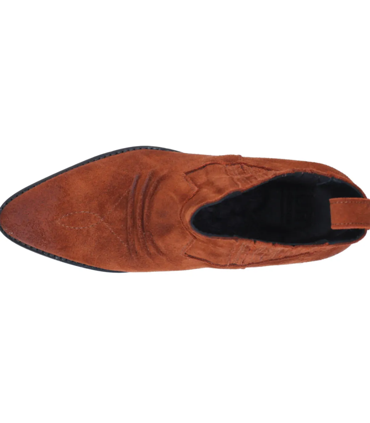 Inspirée des iconiques santiags et réhaussée d’une teinte automnale, la paire de Boots Rose de la marque Fury London est ici déclinée en cuir suédé dans un coloris Seter, un véritable indispensable cette saison. Un travail de surpiqûres vient rythmer cette paire surélevée par un petit talon biseauté. Modèle à enfiler.