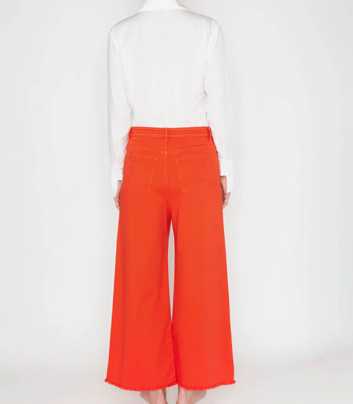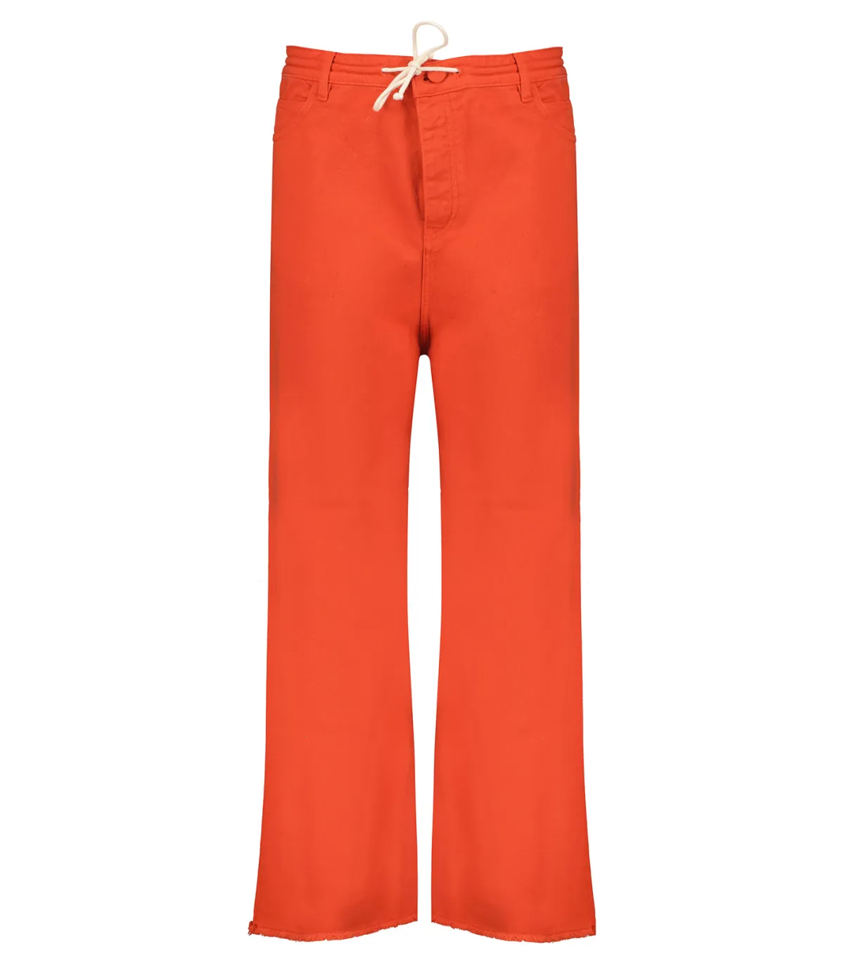 Jean Oversize en denim Rouge Coquelicot de la marque HAPPY HAUS. Ce modèle est conçu en denim très fin lui conférant un aspect quasi-aérien.