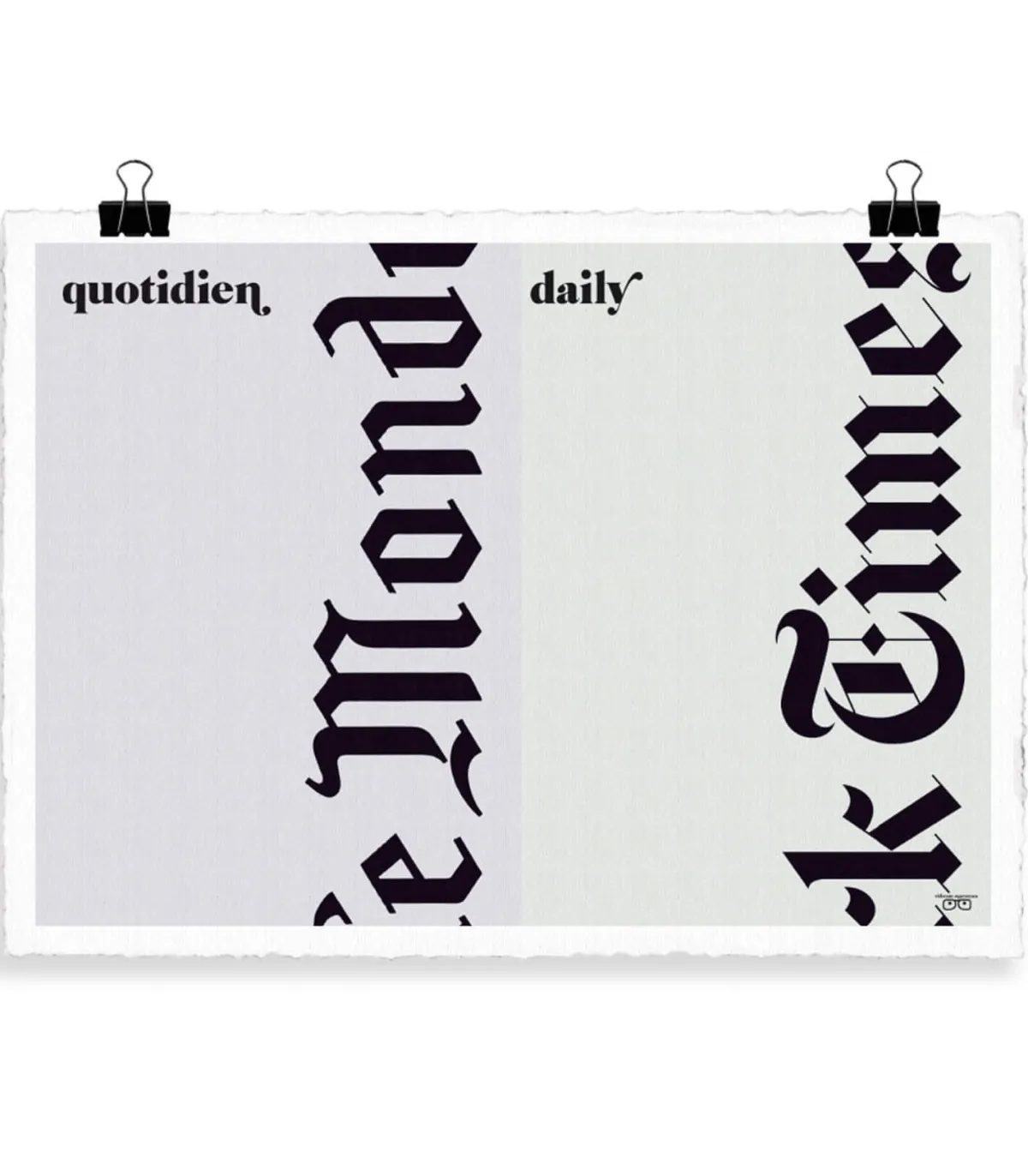 Que vous soyez plutôt Le Monde ou The Times, vous serez forcément charmé par l’affiche Le Journal 56 x 76 cm, éditée par Image Republic. Les amoureux de beaux papiers et d’art succombent à cette illustration de Vahram Muratyan, imprimée en France sur Velin d’Arches 250 grammes de Canson.