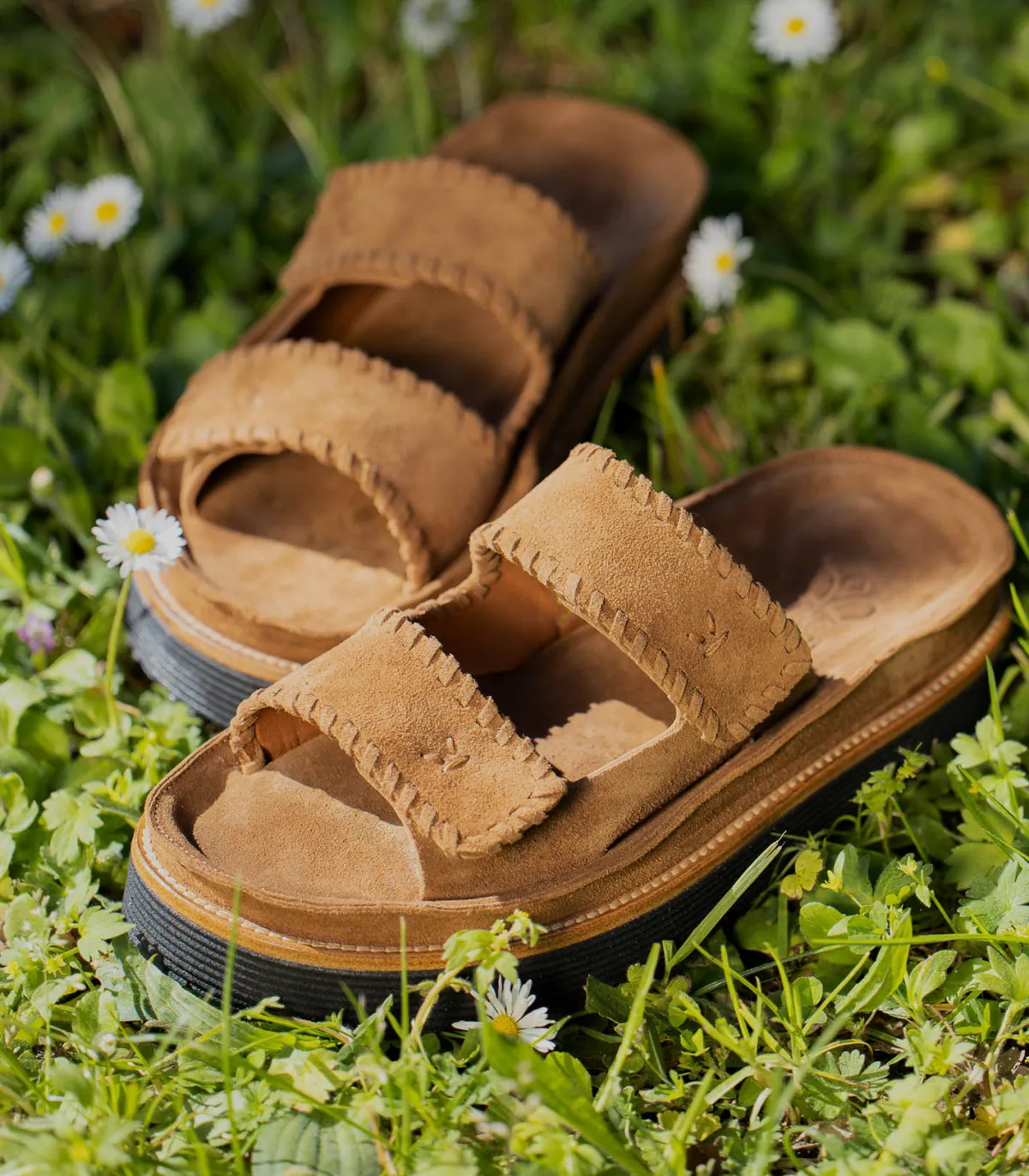 Sandales Crosta Brasil Pin de la marque King Tartufoli, une paire de chaussures estivale et bohème que l’on porte aussi bien avec un pantalon qu’une robe. Elle se distingue par sa conception en cuir velours et ses détails de surpiqûres. Lanières non ajustables.