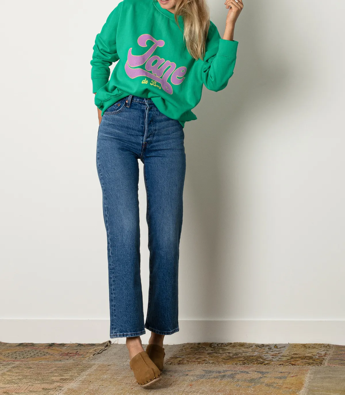 Jean Ribcage Straight Ankle Levi’s, coloris Jive Together, doté d’une taille très haute et d’une jambe droite légèrement évasée, très flatteur pour la silhouette. Teinte assez délavée très facile à porter.