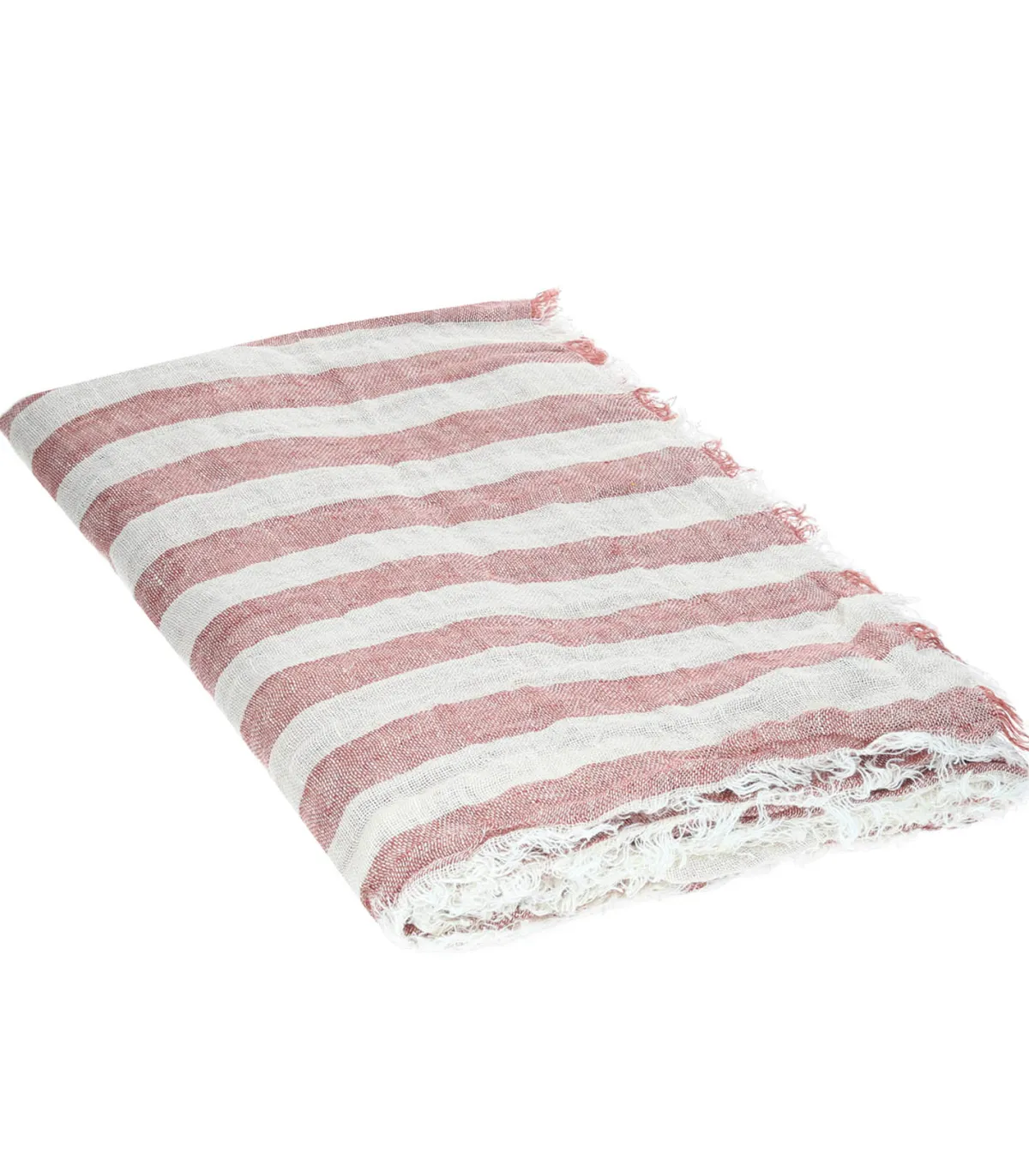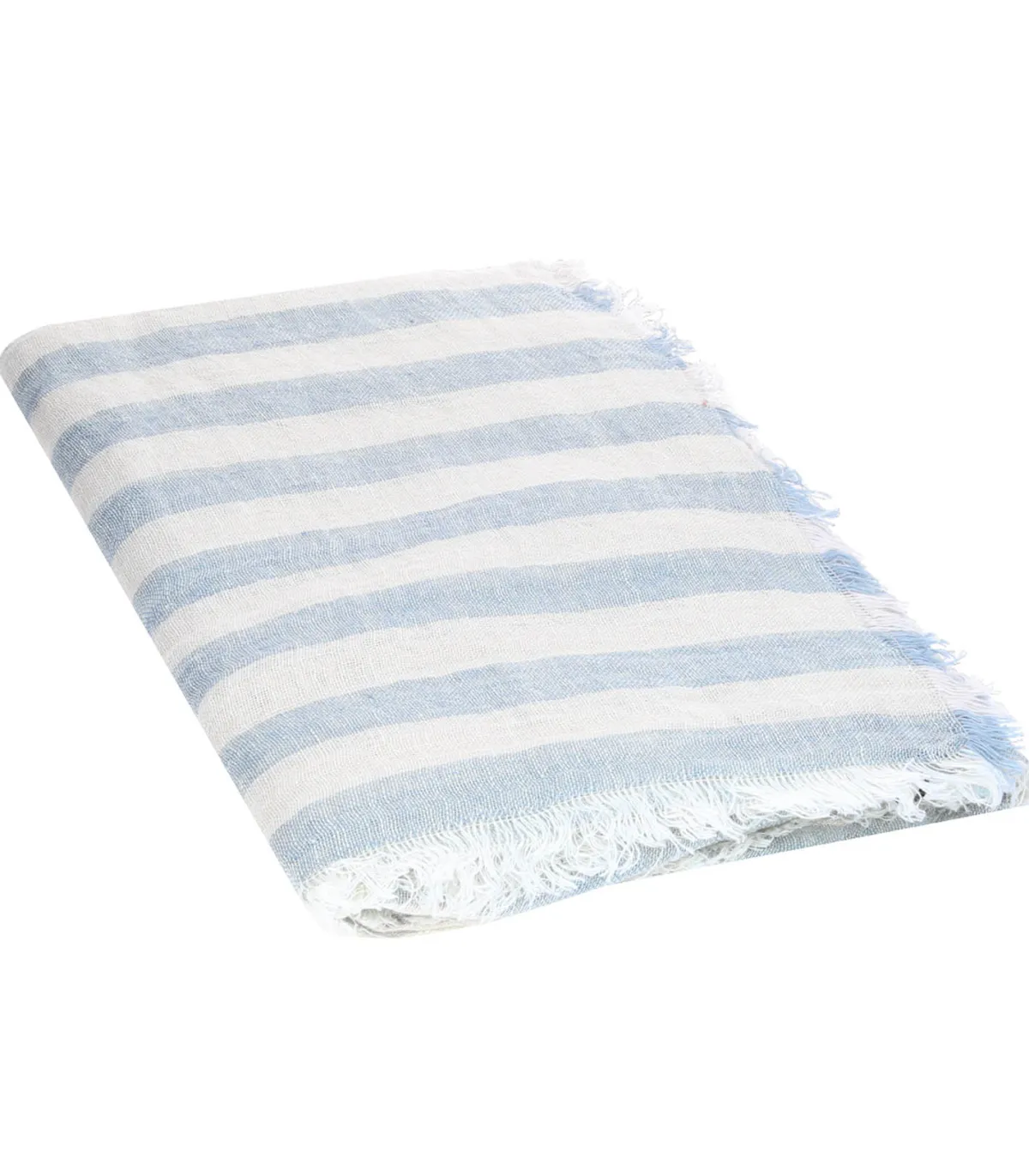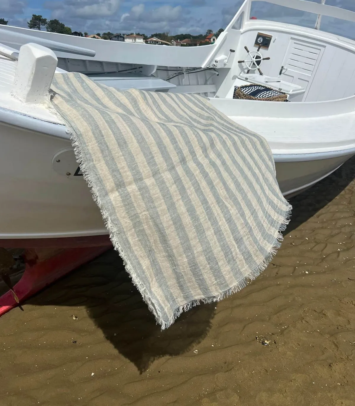 Maison de Vacances Plaid vice versa Frangé Gaze de Lin Lavé Bayadère 150 x 300 cm* Plaids & Couvertures