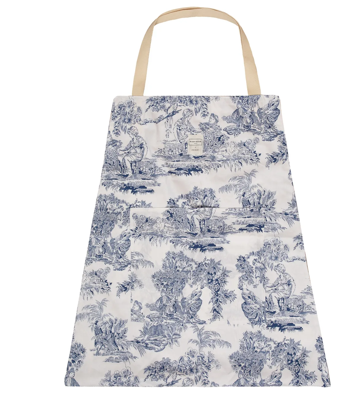 Surf Bag de la maison Mallow en Toile de Jouy de taille Medium, entièrement fabriqué à la main de manière artisanale en France. Ce Surf Bag comporte une poche zippée et une poche plaquée pour pouvoir conserver ses essentiels en allant à la plage.