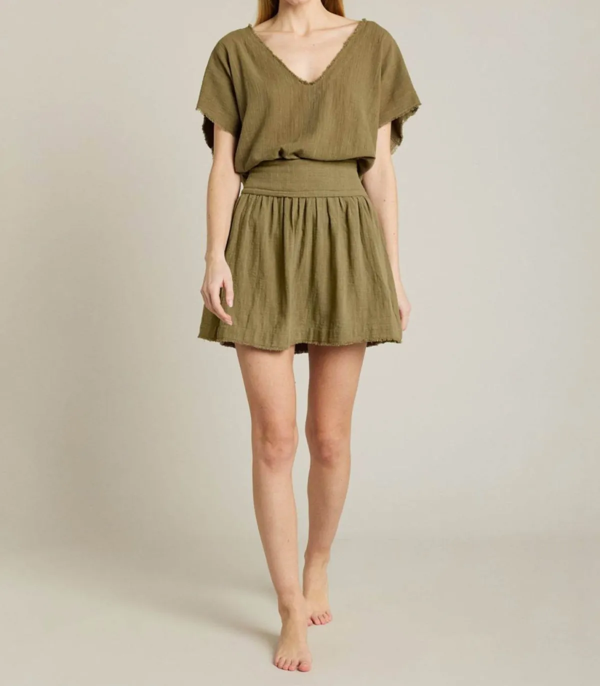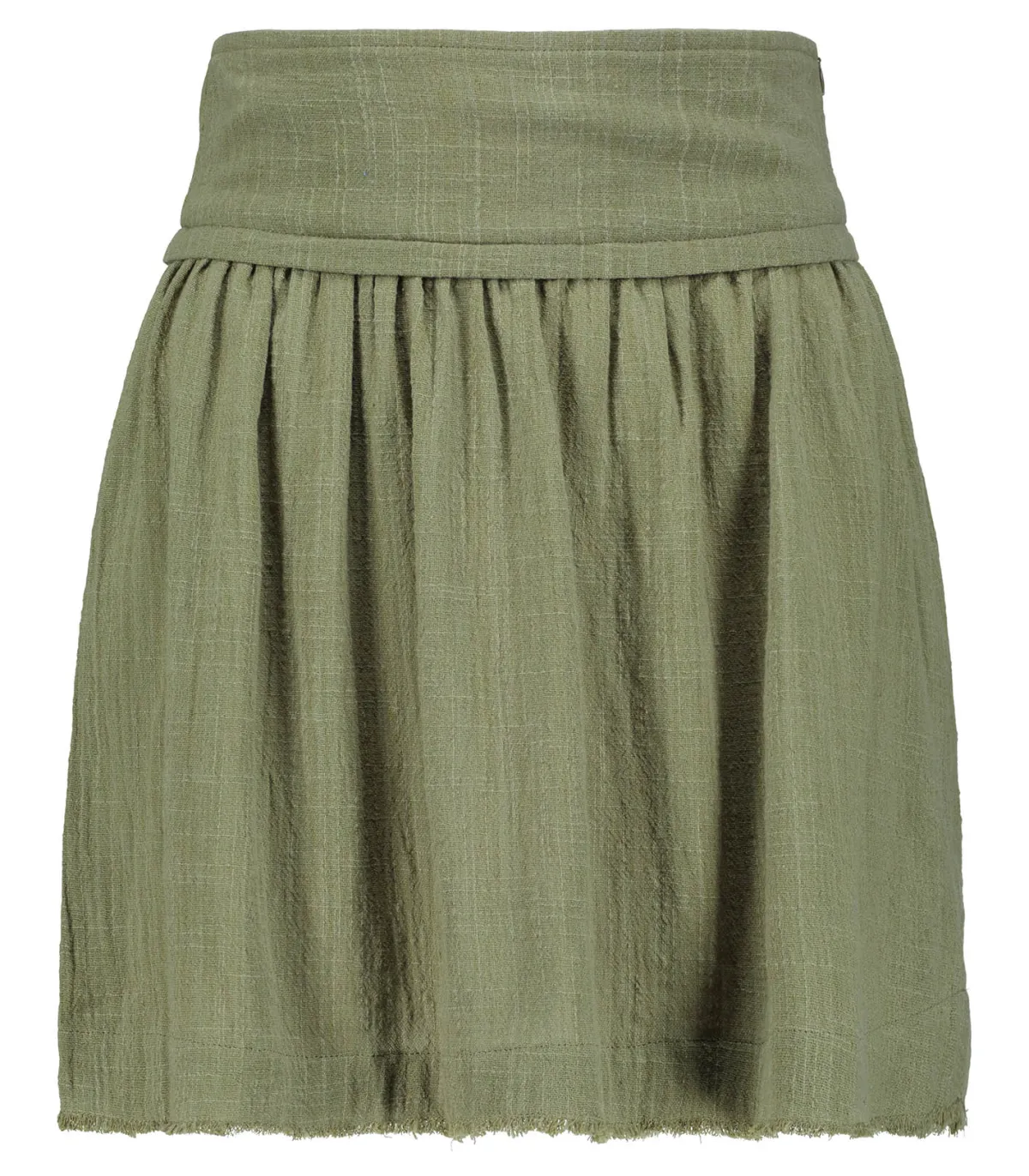 Minijupe en mousseline de coton doux et texturé, légère et pleine de caractère. Dotée d’une fermeture invisible au dos pour une silhouette épurée, elle se termine par une finition brute sur le bas, apportant une touche d’authenticité. En kaki, elle affiche un charme naturel et intemporel, parfait pour une allure casual chic sous le soleil.