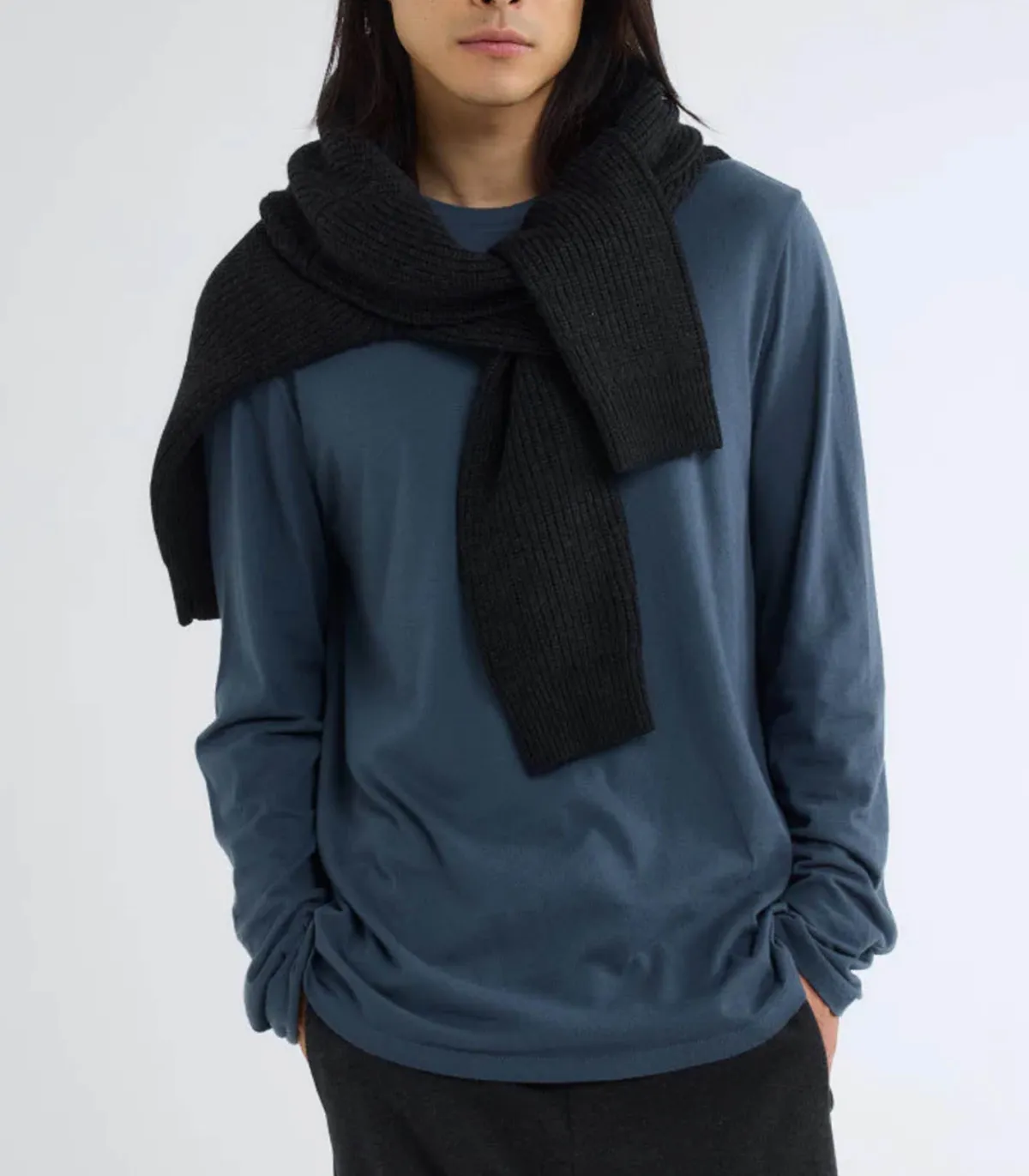 Tee-shirt homme Manches longues en Coton et Cachemire Encre de la marque Majestic Filatures. Fabriqué en Coton et Cachemire, ce tee-shirt vous enveloppe de douceur et de chaleur, idéal pour les journées plus fraîches. Son col rond classique et ses manches longues en font une pièce versatile, facile à associer avec un pantalon clair pour un contraste chic.