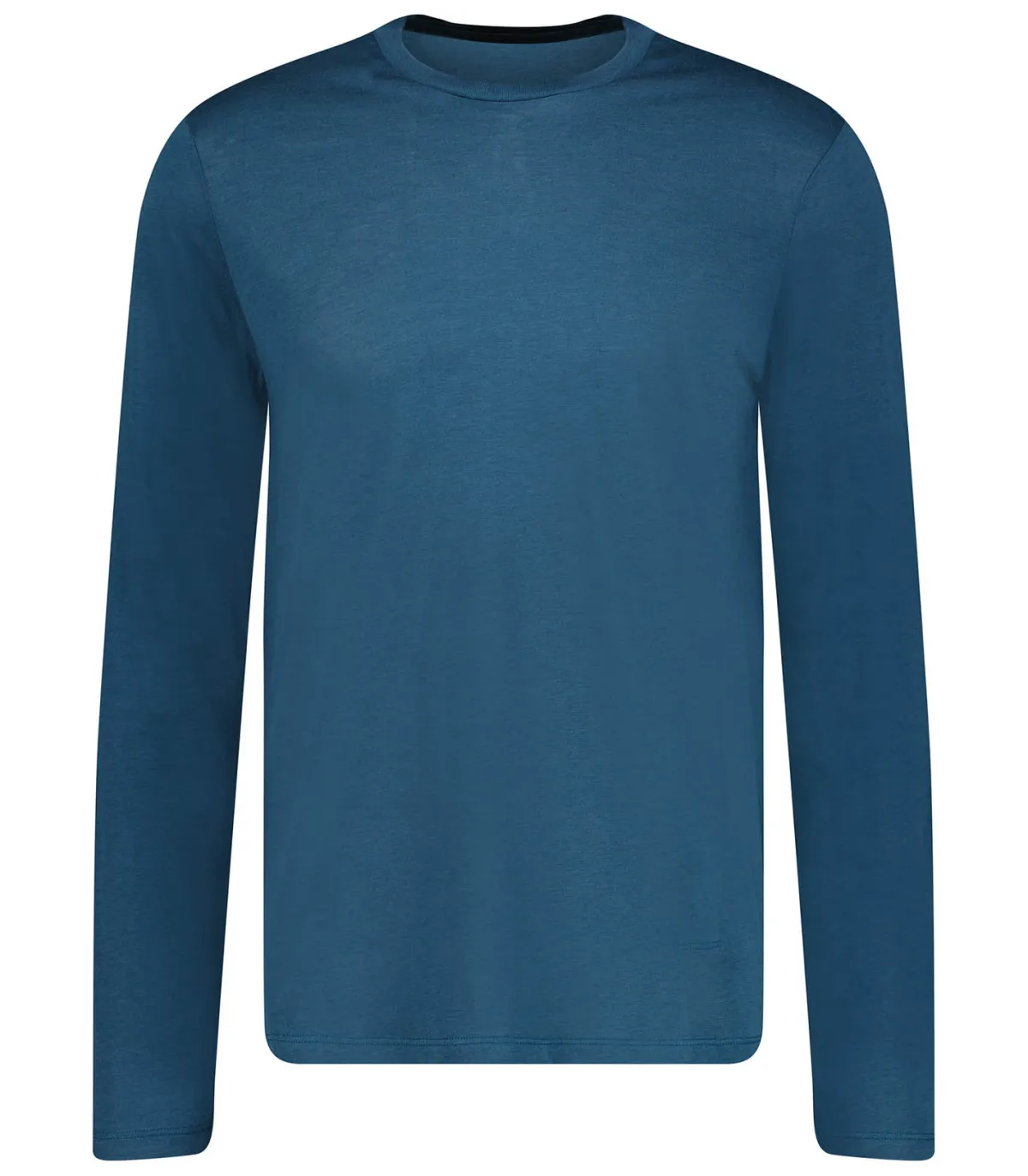 Tee-shirt fin à manches longues de la marque Majestic Filatures, pour homme. Conçu à base d’un mélange de Tencel Lyocel, il se veut très agréable à porter. La matière est fine, respirante et souple. Il fera un parfait top seconde peau à porter sous un pull ou seul avec un jean. Coloris Haute Mer d’un bleu profond à l’esprit casual qui ira avec tout, du jean brut au chino crème.